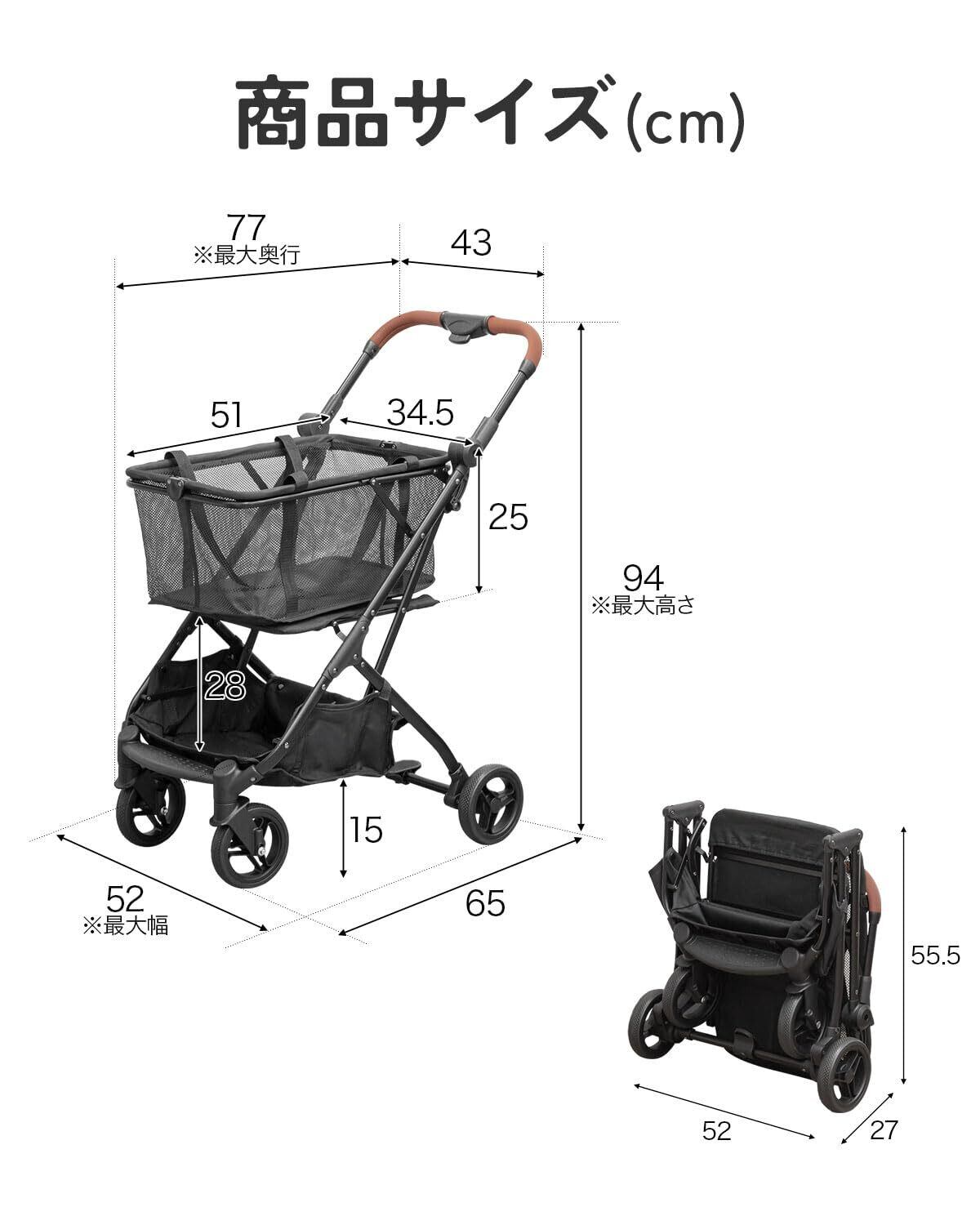 【商品詳細】■サイズ:【本体】展開時 : (約)幅52cm×奥行77cm×高さ94cm 収納時 : (約)幅52cm×奥行27cm×高さ55.5cm ■カゴの内寸 上段 : (約)幅31.5cm×奥行47.5cm×高さ24.5cm 下段 : (約)幅38cm×奥行37cm×高さ16cm ■材質:本体 : アルミ、PU カゴ:PE、PP タイヤ:EVA ■重量:(約)5.5kg ■耐荷重:上段:(約)25kg 下段:(約)5kg
