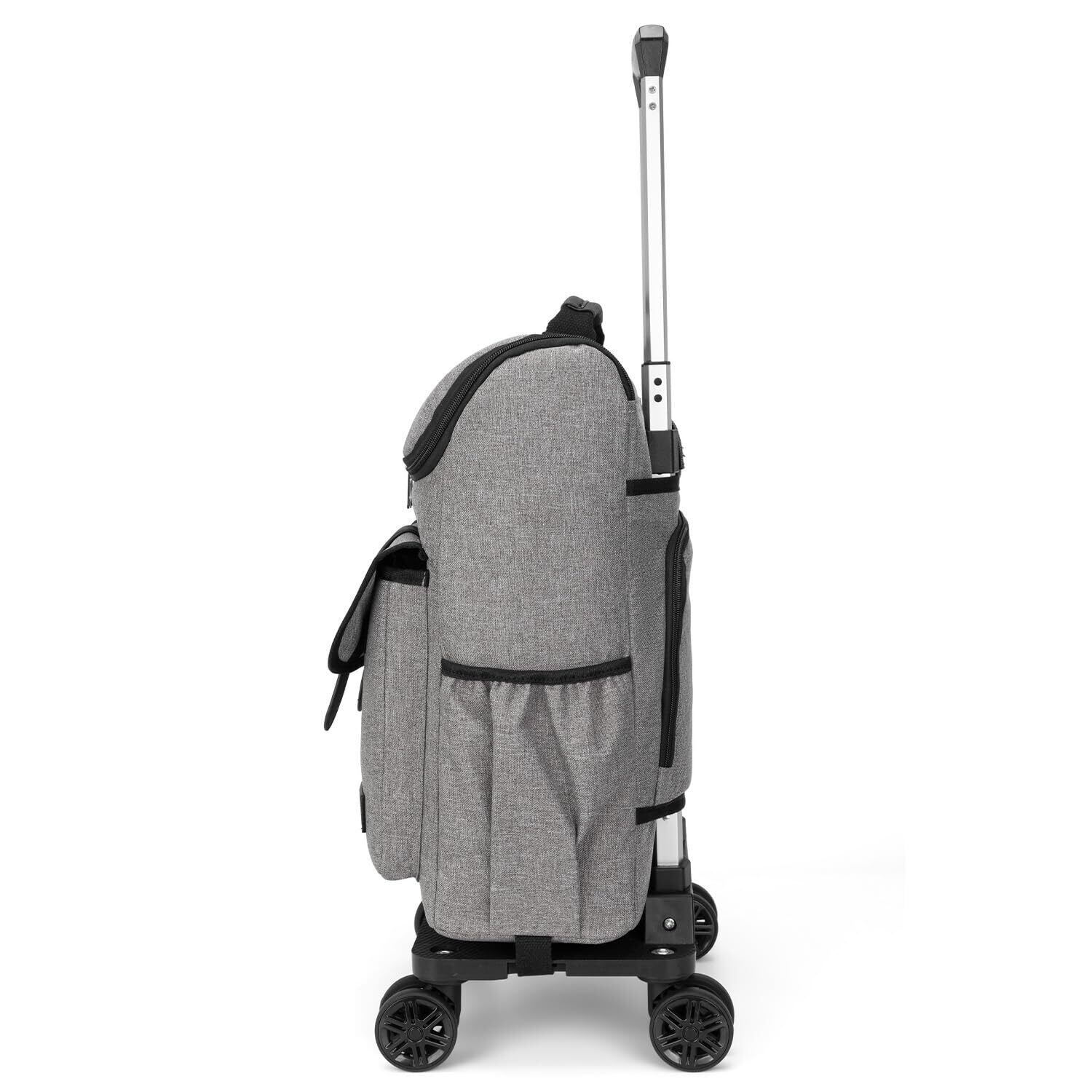 [神戸リベラル] バギング ショッピングカート 横押し 4輪ダブルキャスター 折り畳み 軽量 ショッピングキャリー キャスター交換可能 組み立て済み 602 (グレー)