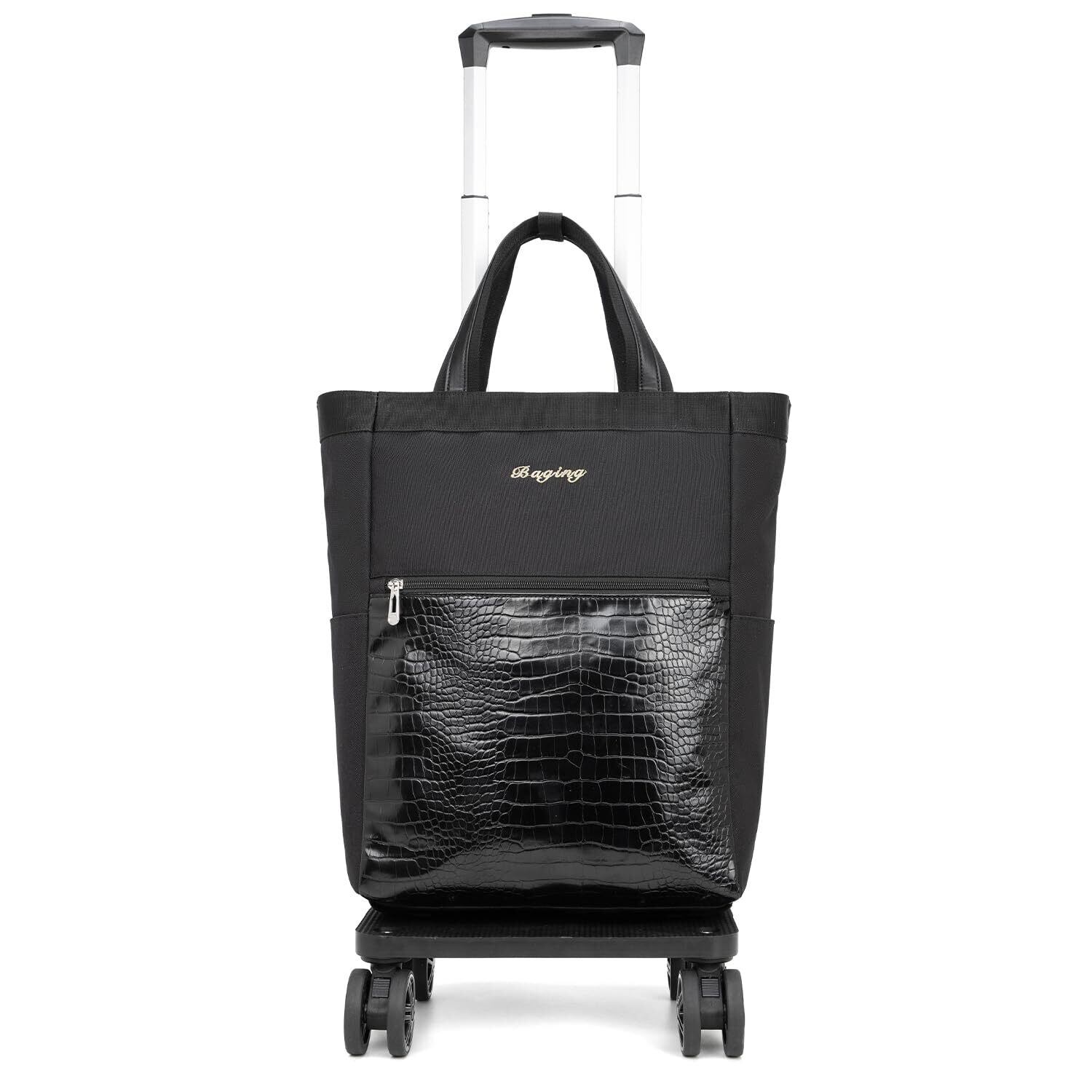 [神戸リベラル] バギング ショッピングキャリー 横押し 4輪ダブルキャスター 折り畳み 軽量 ショッピングカート キャスター交換可能 組み立て済み 601 (ブラック/クロコ)