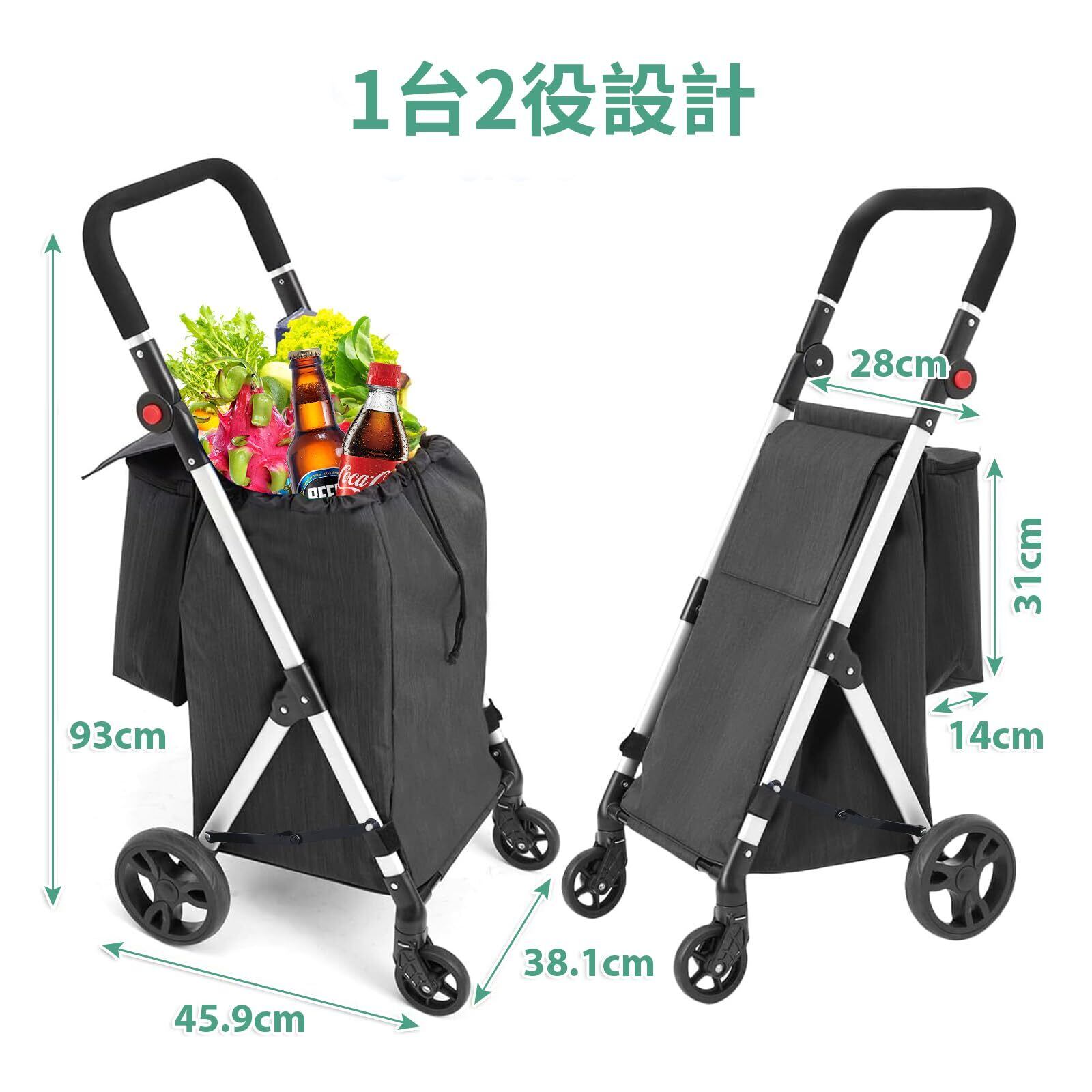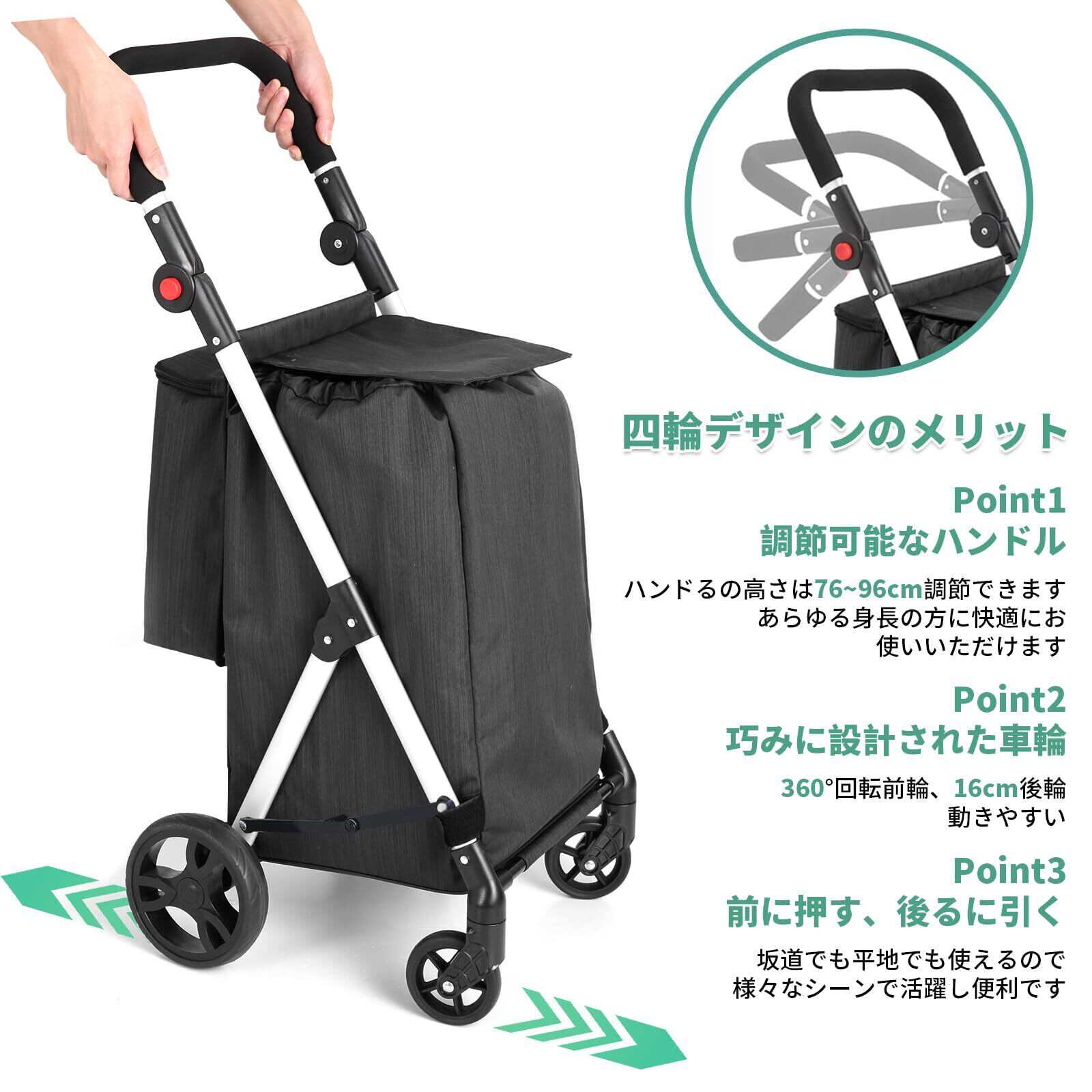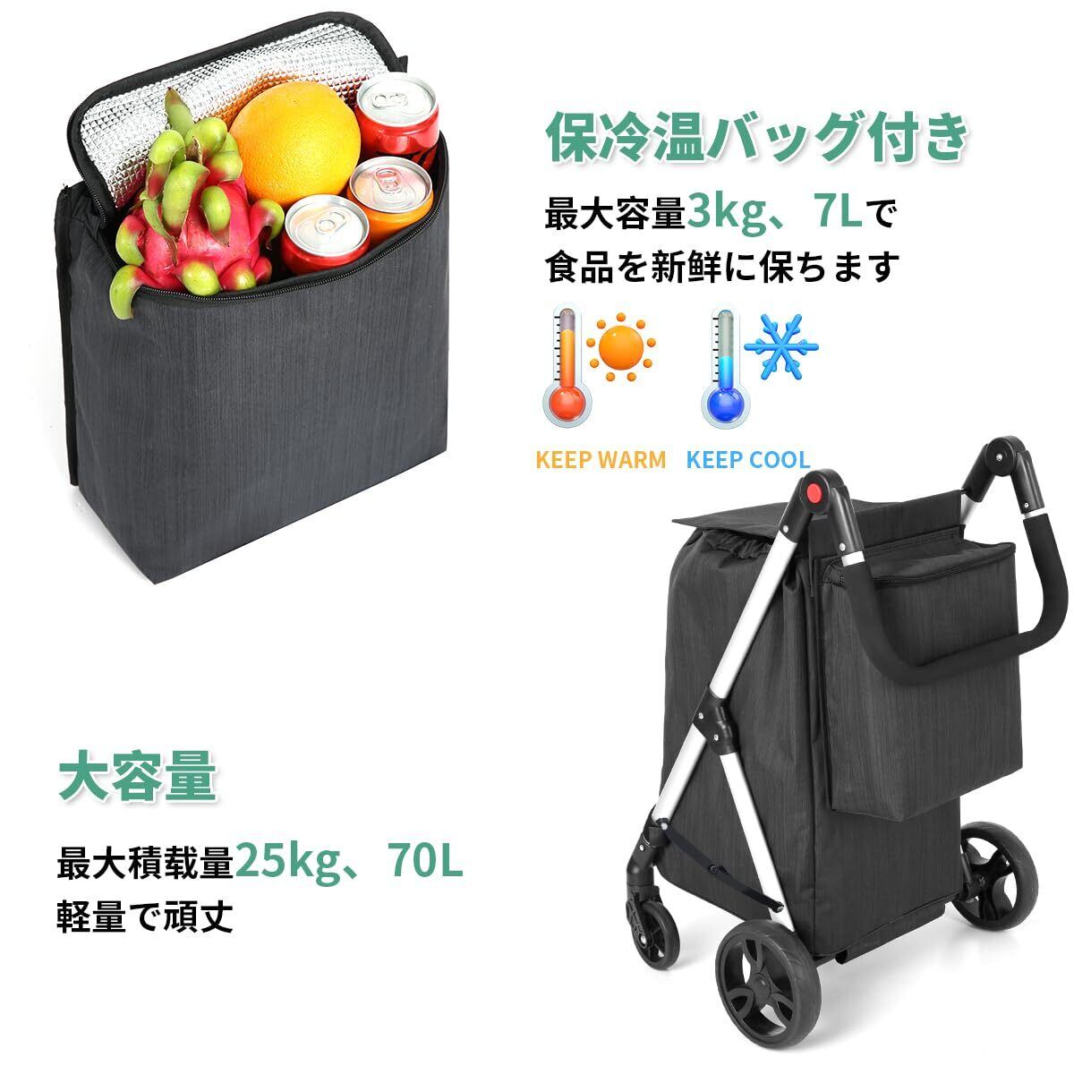 ショッピングカート 4輪 70L 買い物 カート 保冷 軽量 ショッピングキャリー 静音 折り畳み 安定 大容量 買い物 ピクニック 旅行に最適 高齢者(ブラック)
