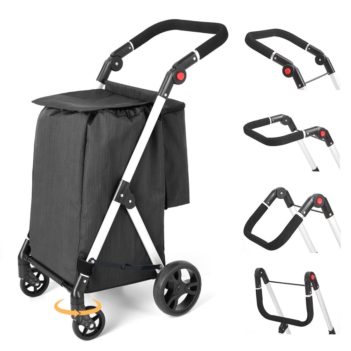 【機動性の向上】:4輪設計により、ショッピングカートは移動可能で柔軟になります,プレッシャーはない,前輪は360度自由に回転します,そして十分強い,重い物を運ぶときも、さまざまな複雑な地形に直面するときも,いずれも安定性と信頼性を維持できます。狭い場所でも高齢者でも楽々移動,群衆の中をシャトルする,ゆったりと楽しいお買い物をお楽しみください。