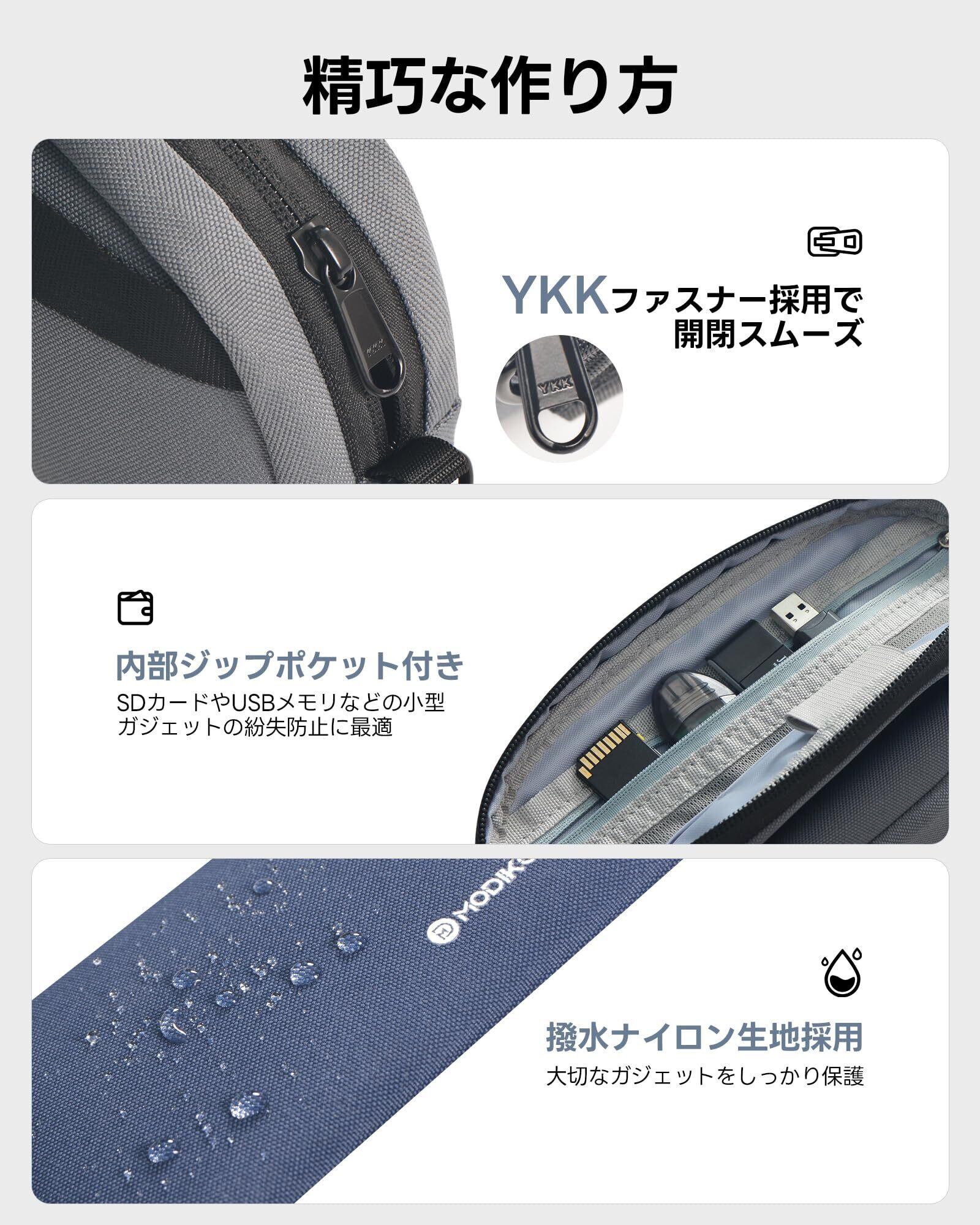 【軽量設計で携帯に最適】 重量わずか85gの超軽量素材を採用したこのポーチは、リュックサックやスーツケースに追加しても負担ゼロ。通勤ラッシュや空港移動時でも疲れ知らずの携帯性を誇り、旅行中の荷物増加を気にせずガジェットを持ち運べます。コンパクトサイズ(23×13×6cm)ながら大容量を実現し、収納ポーチとしての機能性と軽量性が、多忙な現代人のライフスタイルに最適です。