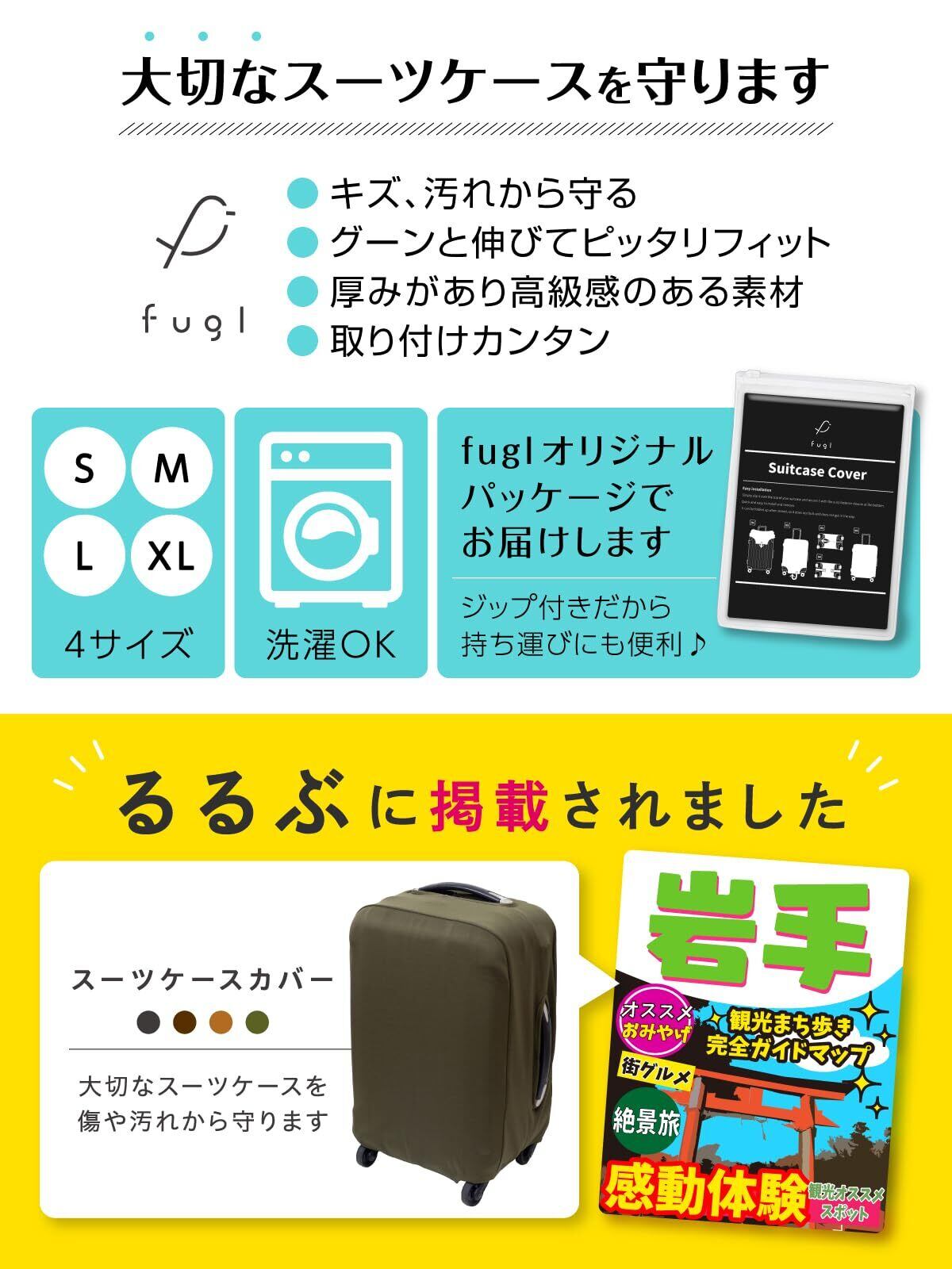 \スーツケースを守る!/ [fugl] 【るるぶ掲載xグーンと伸びる素材】 スーツケースカバー キャリーカバー 伸縮素材 洗濯可 傷防止