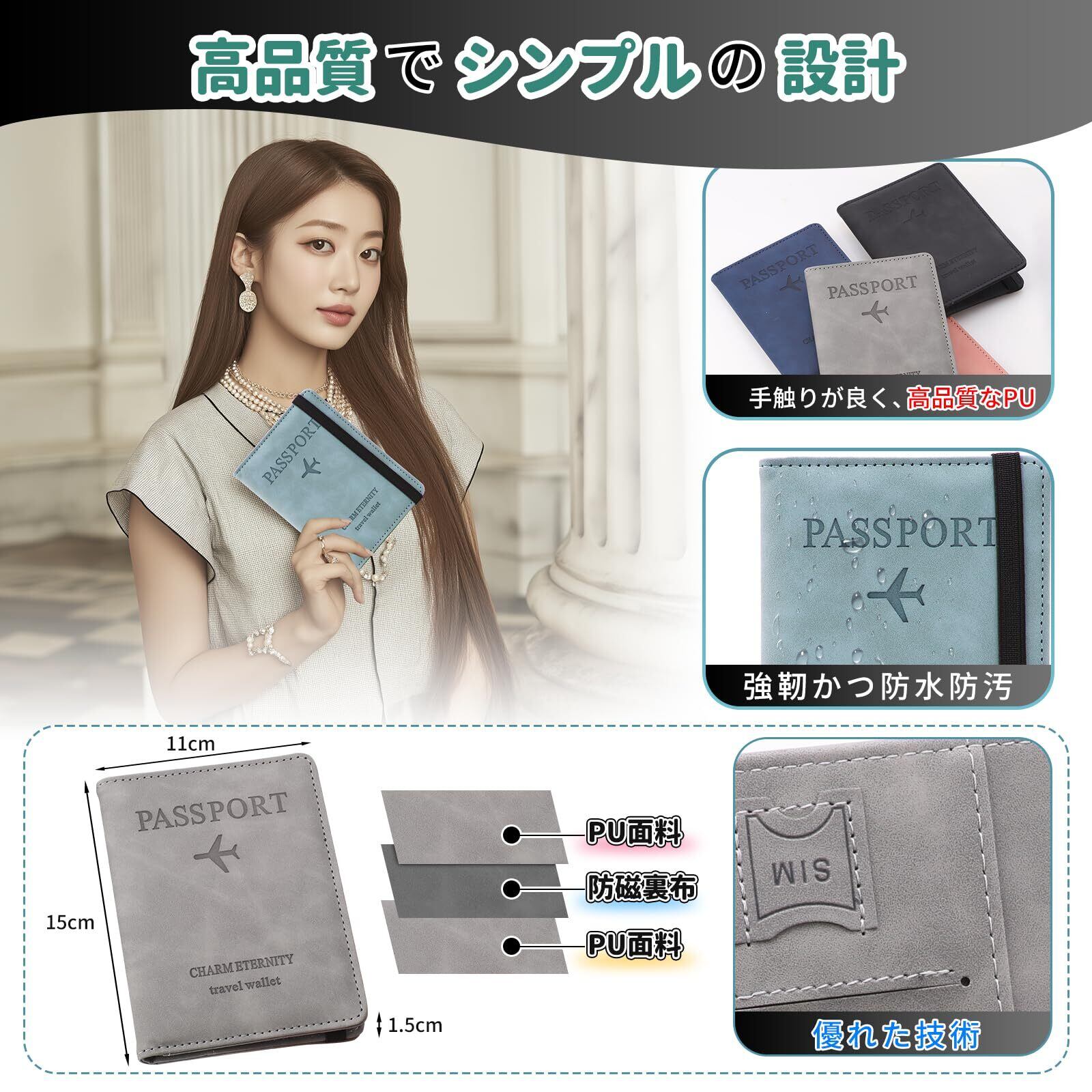 [Vetntihose] パスポートケース スキミング防止 パスポートカバー パスポート カードケース 多機能収納ポケット付き 国内海外旅行用品 トラベルウォレッド パスポートバッグ ポーチ 海外出張 海外旅行 (ライトブルー)