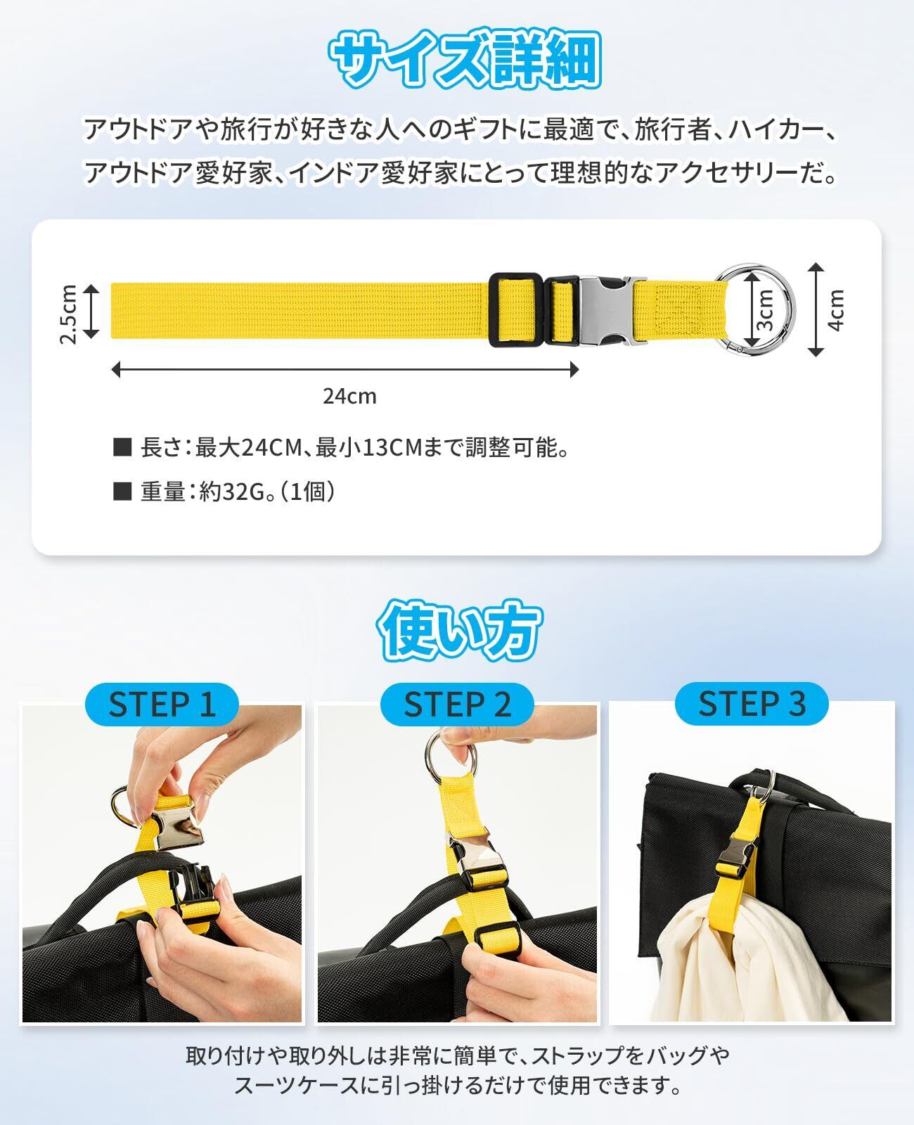 [badbowl] 荷物ストラップ ジャケットホルダー 調節可能 両手解放 スーツケース フック バッグとめるベルト キャリーケース 便利グッズ ジャケット・マフラー持ち運び 軽量 出張 旅行用品 (Yellow)