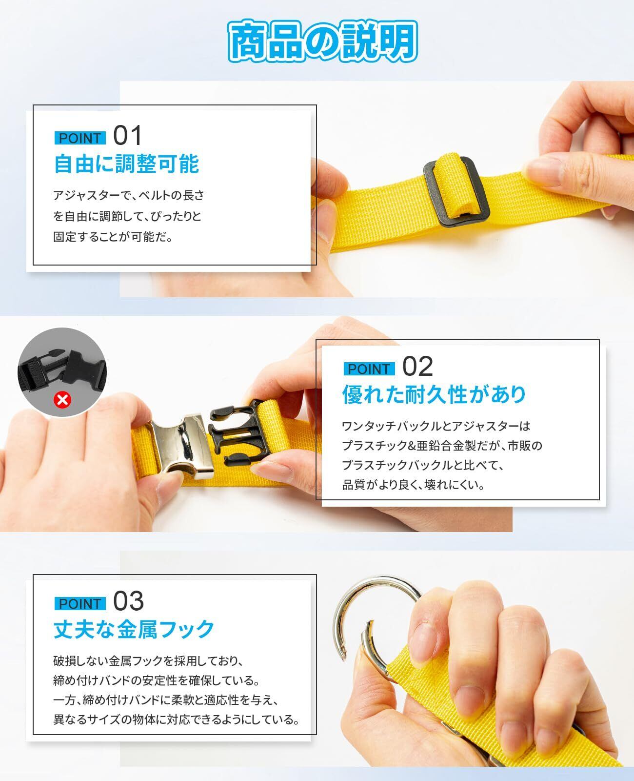 シンプルでオシャレなデザインの荷物ストラップには、5つの思いやりが込められている。まず、ジャケットホルダーはアジャスターでベルトの長さを自由に調節できる。異なるサイズの荷物にフィットさせるため、実際のニーズに応じて自由に調整することができる。次に、スーツケース フックのベルトは、より耐摩耗性に優れた技術を採用している。また、スーツケース フック 後付けは取り付け、取り外しが簡単だ。それに、フックは亜鉛合金製で、ワンタッチバックルはプラスチックと亜鉛合金の組み合わせだ。他のプラスチック製のフックやワンタッチバックルに比べ、キャリーケース フックの品質が良く、丈夫で破損しにくいため、より安心して使用できる。最後に、出張や旅行、季節の変化に対応する、両手を解放するキャリーケース 便利グッズ。ジャケットやマフラーをバッグやスーツケースに掛けて持ち運ぶことも手軽にできる。さらに、リュック スーツケース 固定は軽量で持ち運びやすく、使用しないときはキーホルダーとしてバッグに取り付けるのも便利だ。スーツケース アクセサリーはハンドバッグ、荷物、ブリーフケースなど、さまざまなバッグに対応する。スーツケース 荷物かけは旅行、ショッピング、キャンプ、登山、ハイキングなどに大活躍!バッグとめるベルトはブラック、シルバーグレー、カーキ、ライトブルー、レッド、オレンジの6色が用意されている。