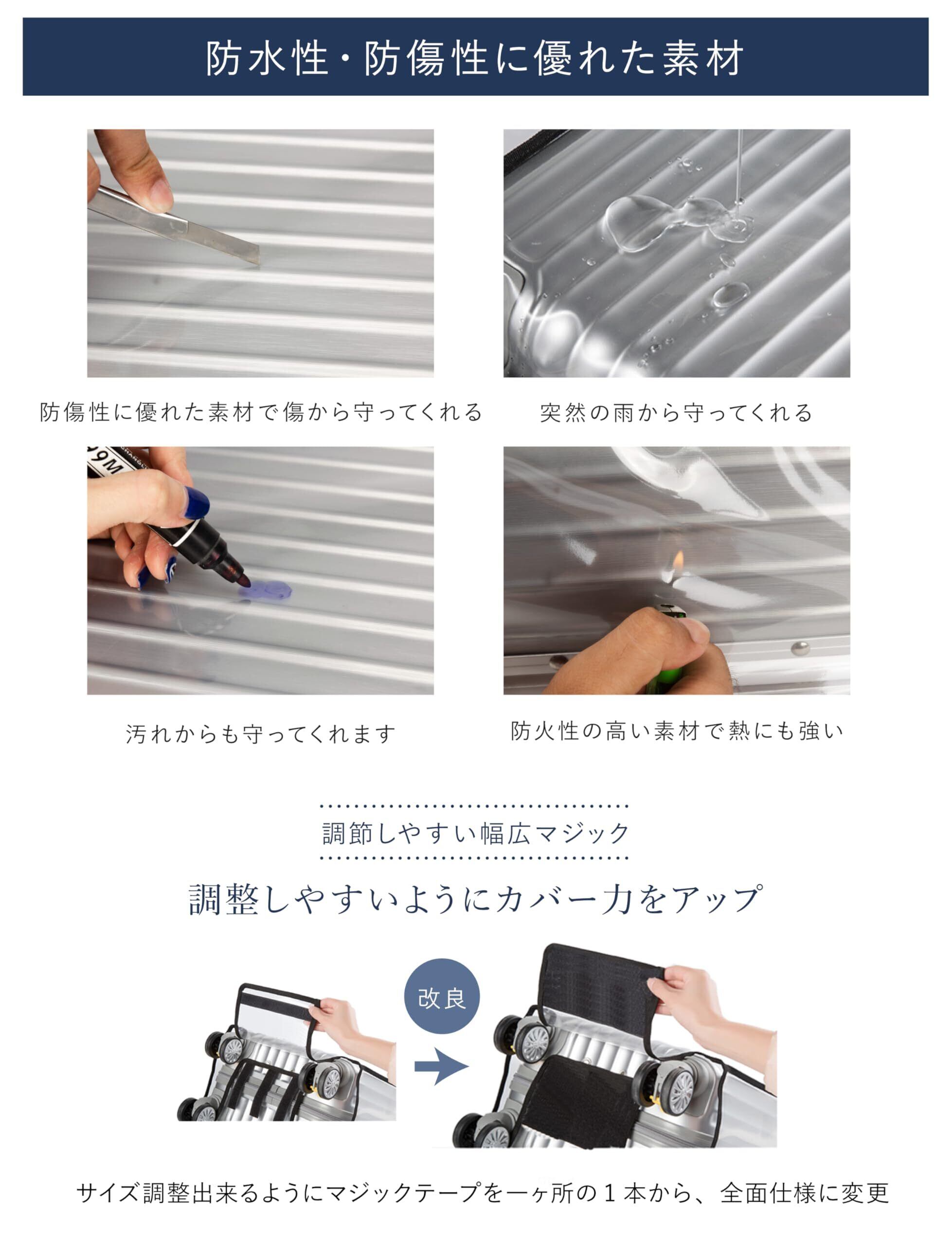 【特徴】:【防水効果で雨の侵入を防ぐ】【傷、汚れから保護】【透明なのでスーツケース本来のデザインを生かす】【軽量・コンパクト収納】【豊富なサイズバリエーション】※登録済【登録第5905675号】