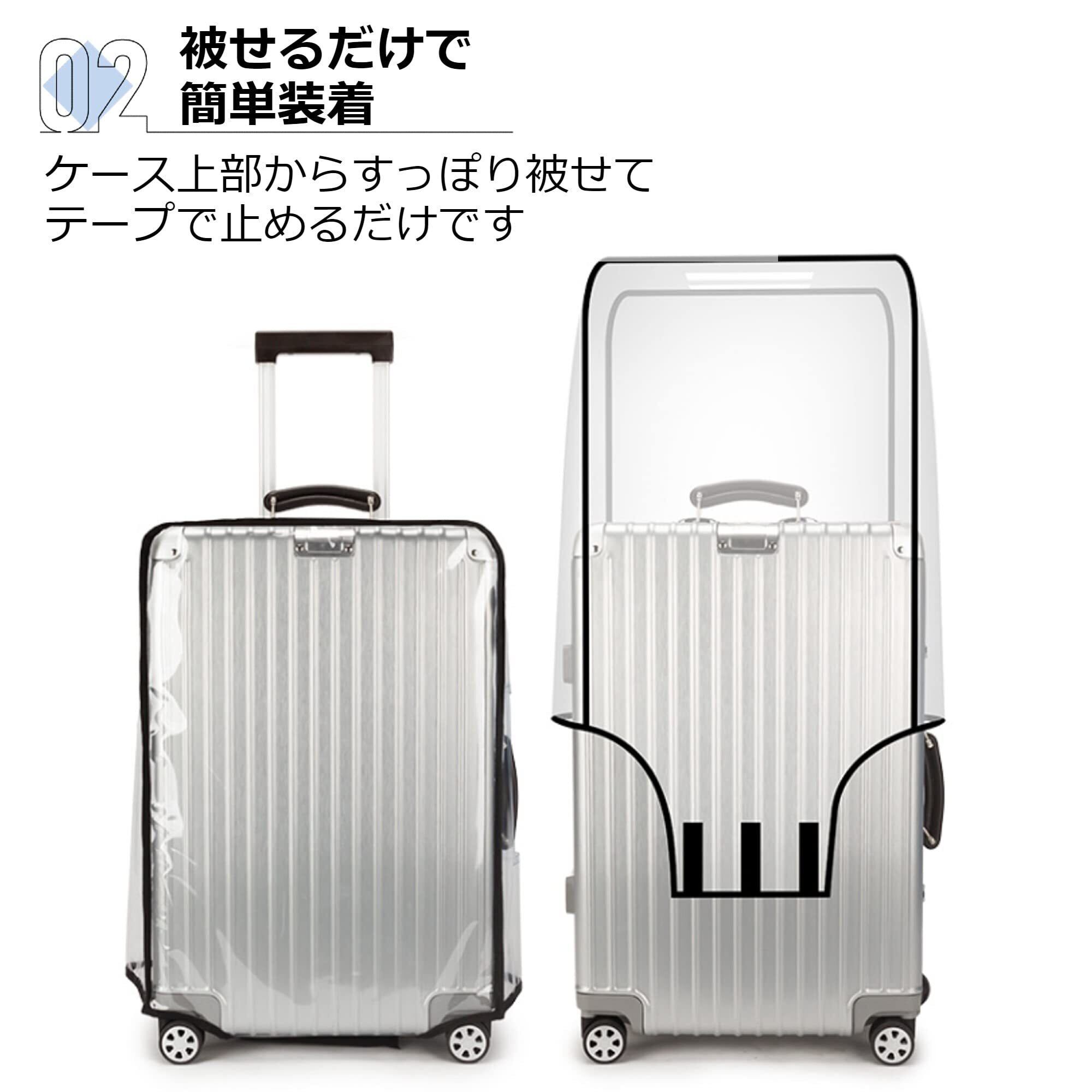 【安心の防水・防汚・傷防止】丈夫なPVC製なので汚れても水洗いできるのでいつでも清潔を保てます。色は透明なので、スーツケースのデザインはそのままで自分の荷物がはっきりわかります。 カバーのおかげでむやみに開けられる心配もないので、防犯にもなります。