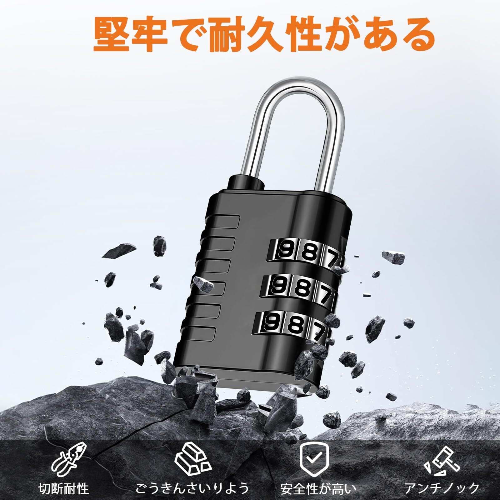 特徴 パスコードロック解除, リセット可能, 耐候性, 耐切創性, 耐引っかき性