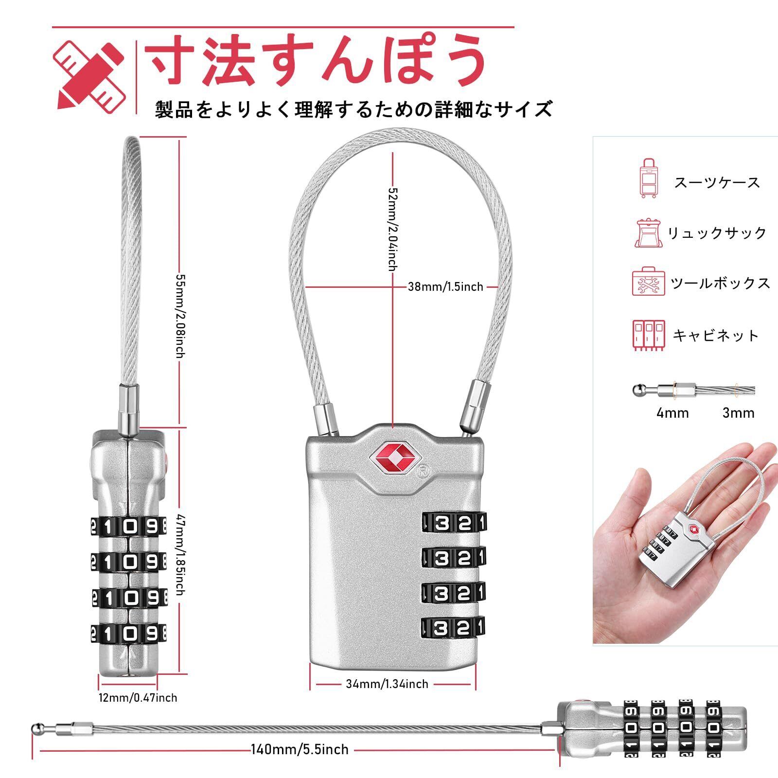 ▶高品質: 4桁錠の本体は高強度亜鉛合金製、ケーブルは頑丈で切断に強いスチール製です。ロックを開けるには、方法は二つだけです、特別なTSAキーまたは暗証番号しか開けません。