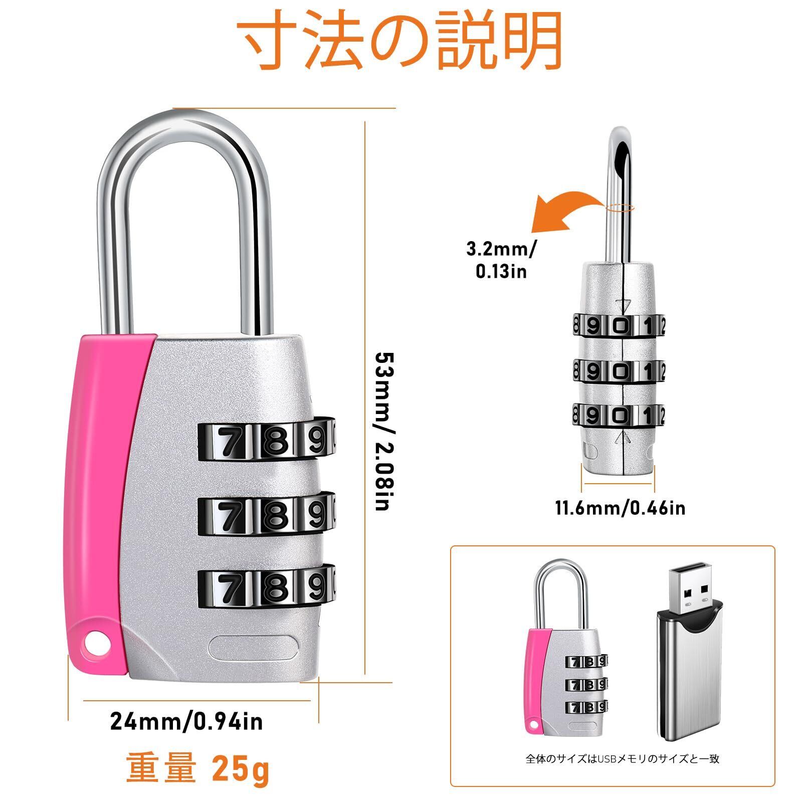 ▶コンパクトで便利:南京錠の重さはわずか25グラムで、バックパックやスーツケースに簡単に掛けることができます。ピンクとシルバーの配色がスタイリッシュでキュート。