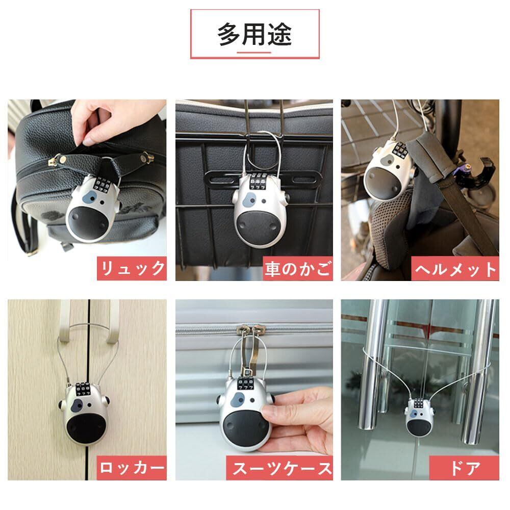 DFsucces ワイヤーロック 牛 かわいい 巻き取り式 南京錠 ワイヤータイプ 番号 旅行 空港 盗難防止 3桁ダイヤル式ロック(シルバー)