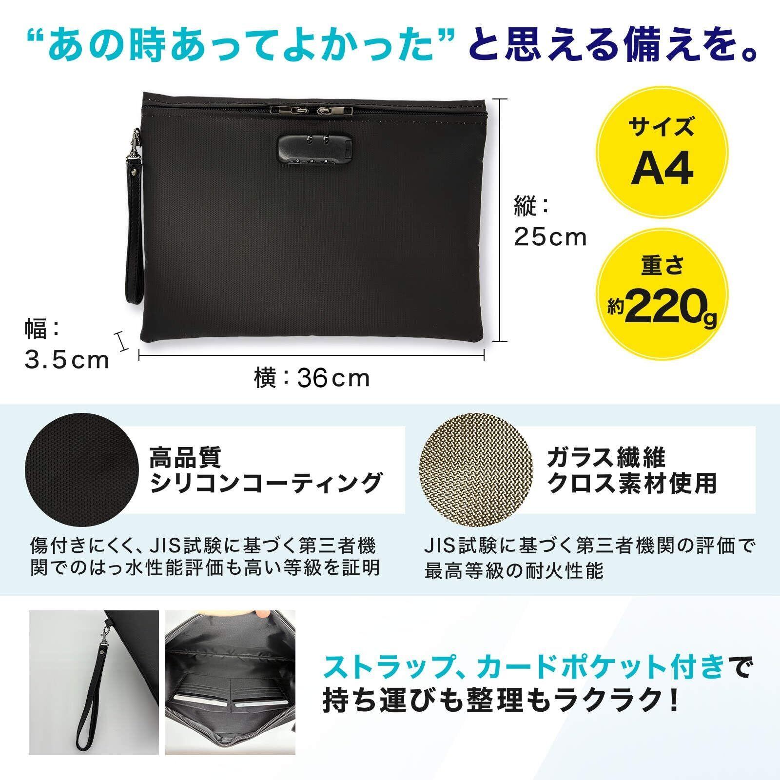 【防災士&整理収納アドバイザー監修】 耐火バッグ 鍵付きポーチ A4収納 JIS試験済 貴重品ケース 防火袋 耐火ケース セキュリティポーチ