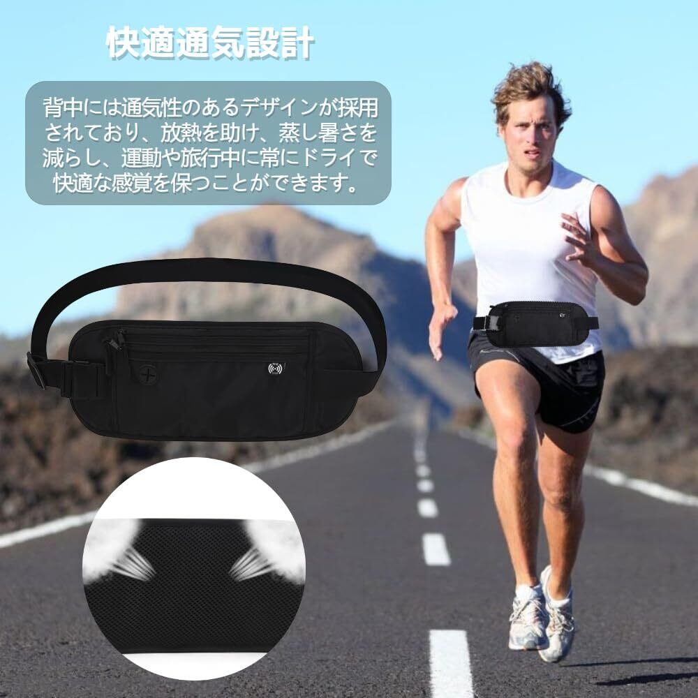 セキュリティポーチ ウエストポーチ RFID 旅行用 パスポートケース 防水 薄型 軽量 パスポートケース スキミング防止 海外旅行 バッグ 防犯 旅行便利 運動ランニング アウトドア 男女兼用 (ブラック)