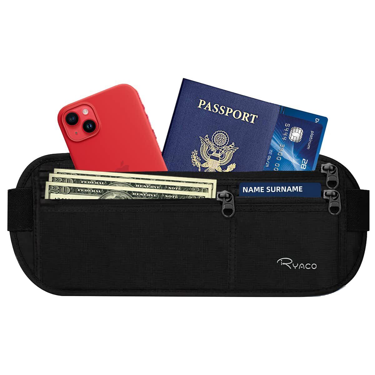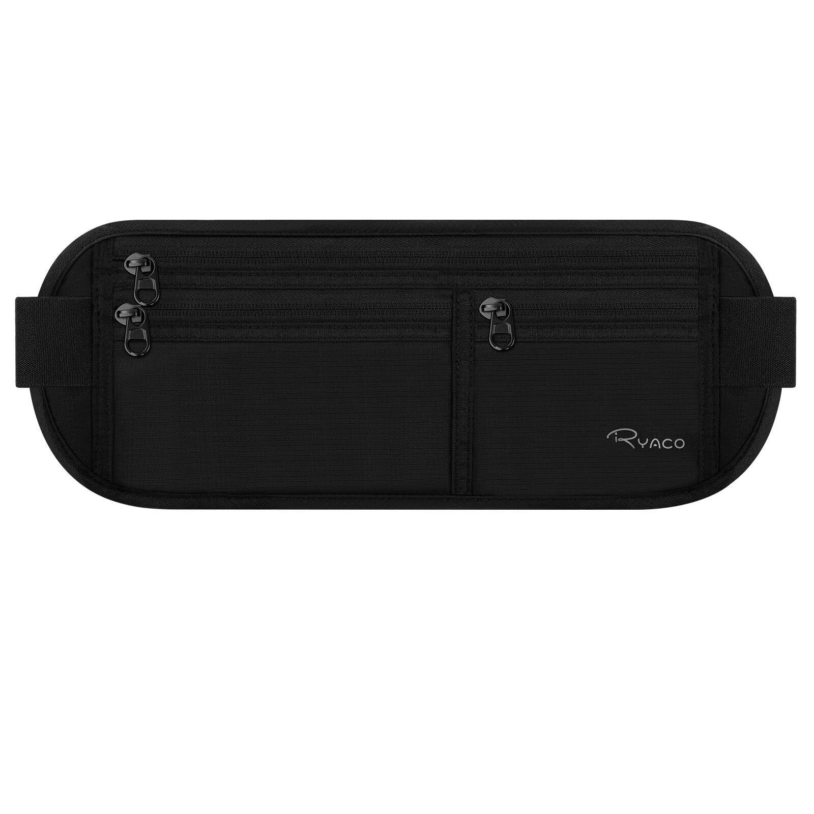 [RYACO] マネーベルトパスポートホルダー RFIDブロック隠しトラベル財布 超軽量超薄型 耐水性あり 防汗 揺れない大容量 旅行小物 ランニングポーチ ウエストポーチ カードウォレット隠しポーチ イヤホンホール付き iPhoneスマホブラック(長方形)