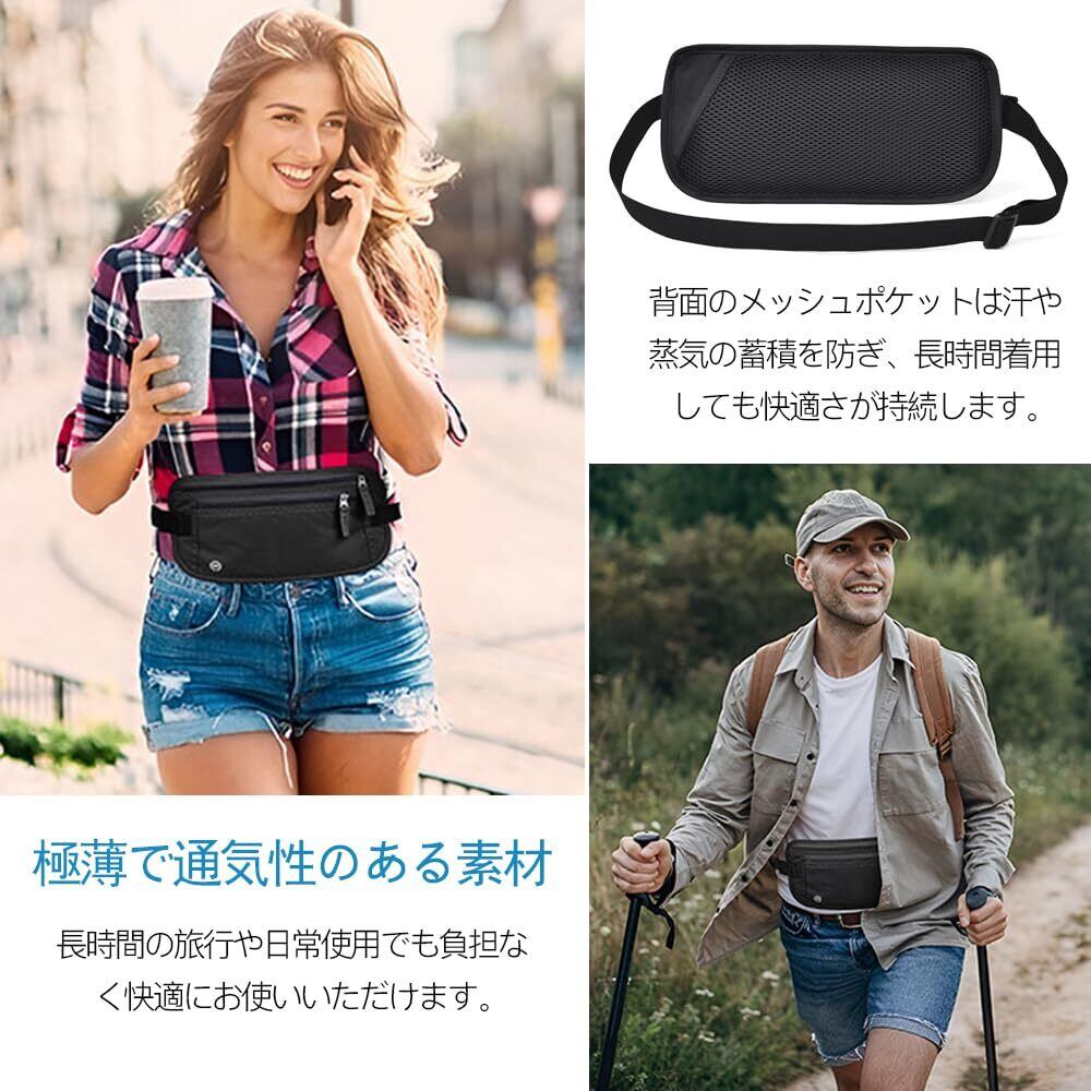 ウエストポーチ 薄型 セキュリティポーチ パスポートケース スリ対策 軽量 多機能 貴重品ポーチ シークレットポーチ 多収納 耐水 旅行 便利グッズ バッグ 防犯グッズ 男女兼用 (ブラック)