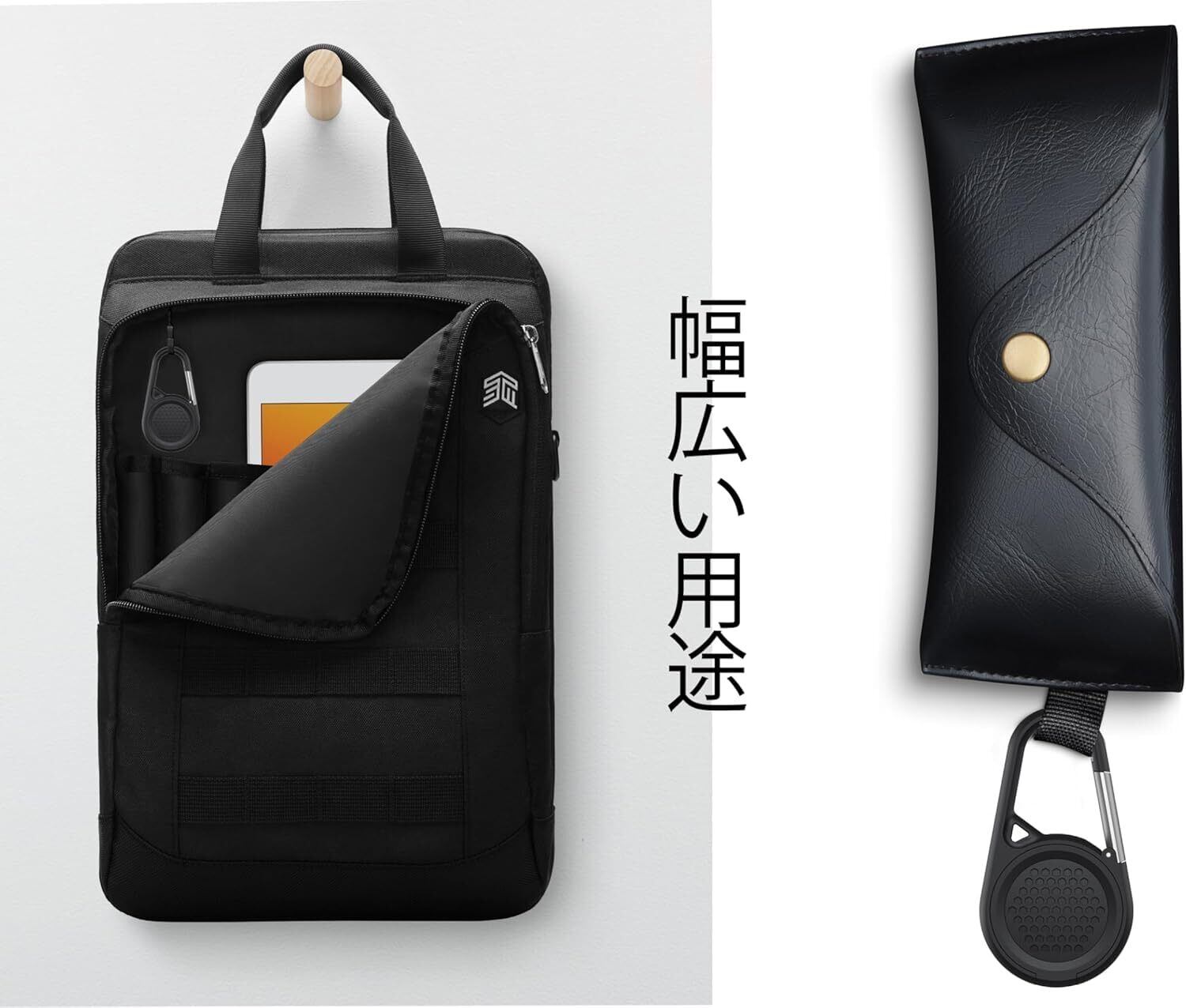 【取り付け簡単】カラビナ付き設計、バッグ、ベルトループなどに簡単に着脱可能です。
