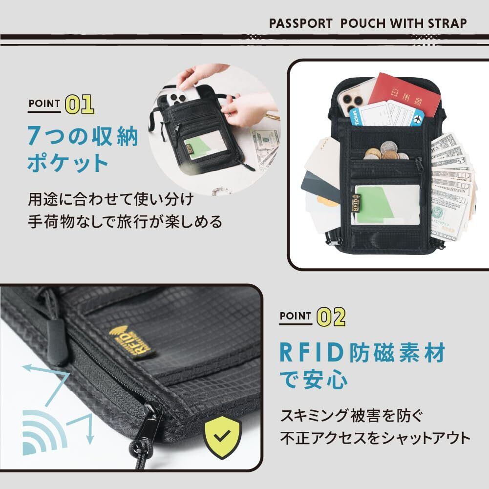 [Liferinger] パスポートケース 【大手旅行会社ツアコン監修】 スキミング防止 セキュリティポーチ 【日本ブランド】 首さげ パスポートカバー コンパクト 7ポケット 海外旅行