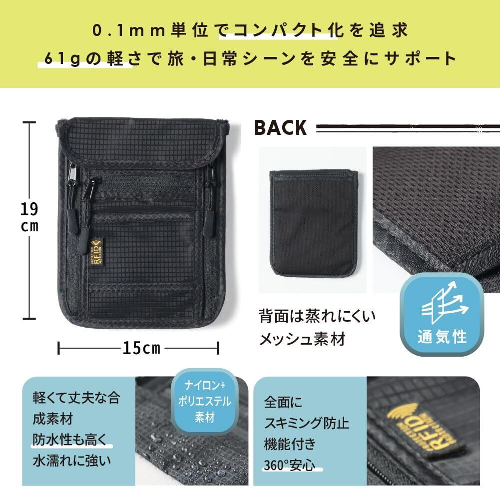 【犯罪者に狙われにくいシンプルなデザイン】 ハイブランドな商品、デザイン性の高いものは、犯罪に狙われやすいため危険!本商品は犯罪者の目につきにくい黒を基調にしたシンプルなデザインです。 パスポートや現金を保管していると気付かれにくい、カジュアルでシンプルなデザインがポイント。洋服とコーディネートしやすく、年齢を選ばずに男女兼用でお使いいただけます。