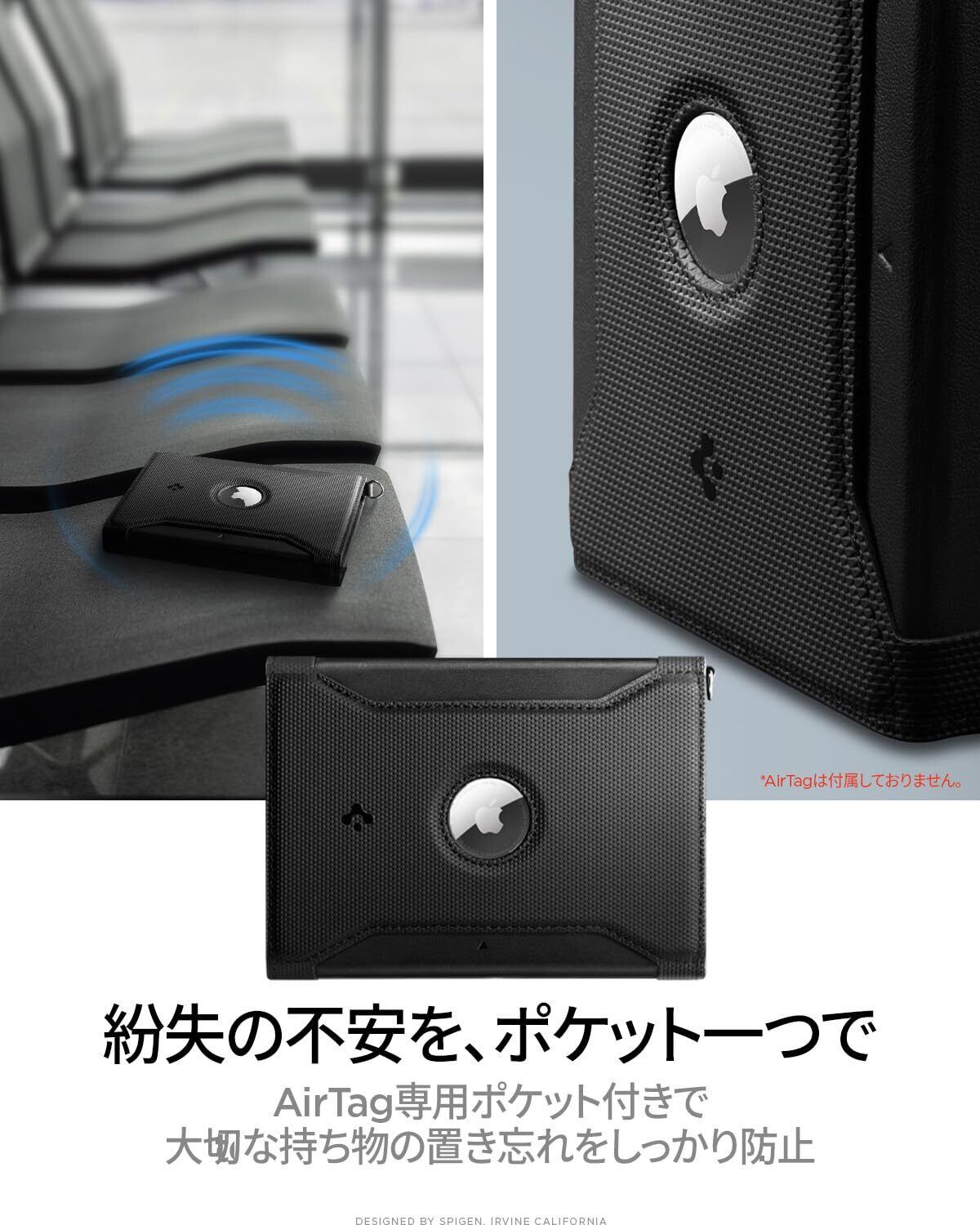 [Spigen] パスポートケース Airtag 収納可能 RFID スキミング防止 SIM ピン PUレザー AFA08852 (ブラック)