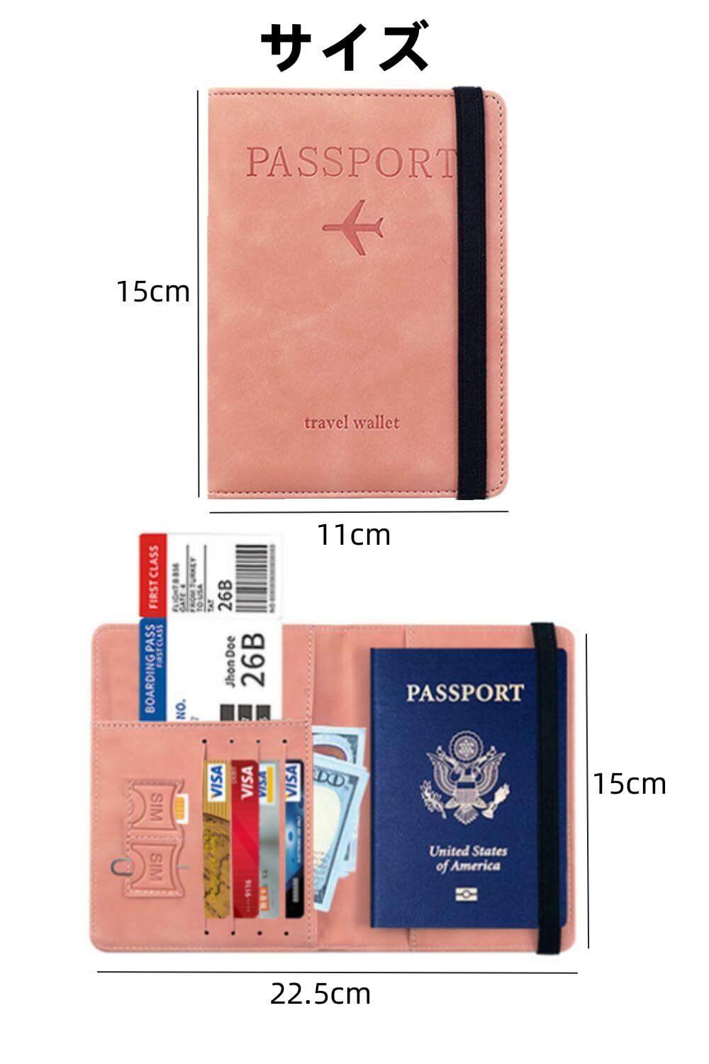 \安全でスタイリッシュな旅を!/[YFFSFDC] パスポートケース スキミング防止 パスポートカバー ホルダー トラベルウォレット パスポートカードケース 多機能収納ポケット 国内海外旅行用品 海外出張 海外旅行 (ピンク)
