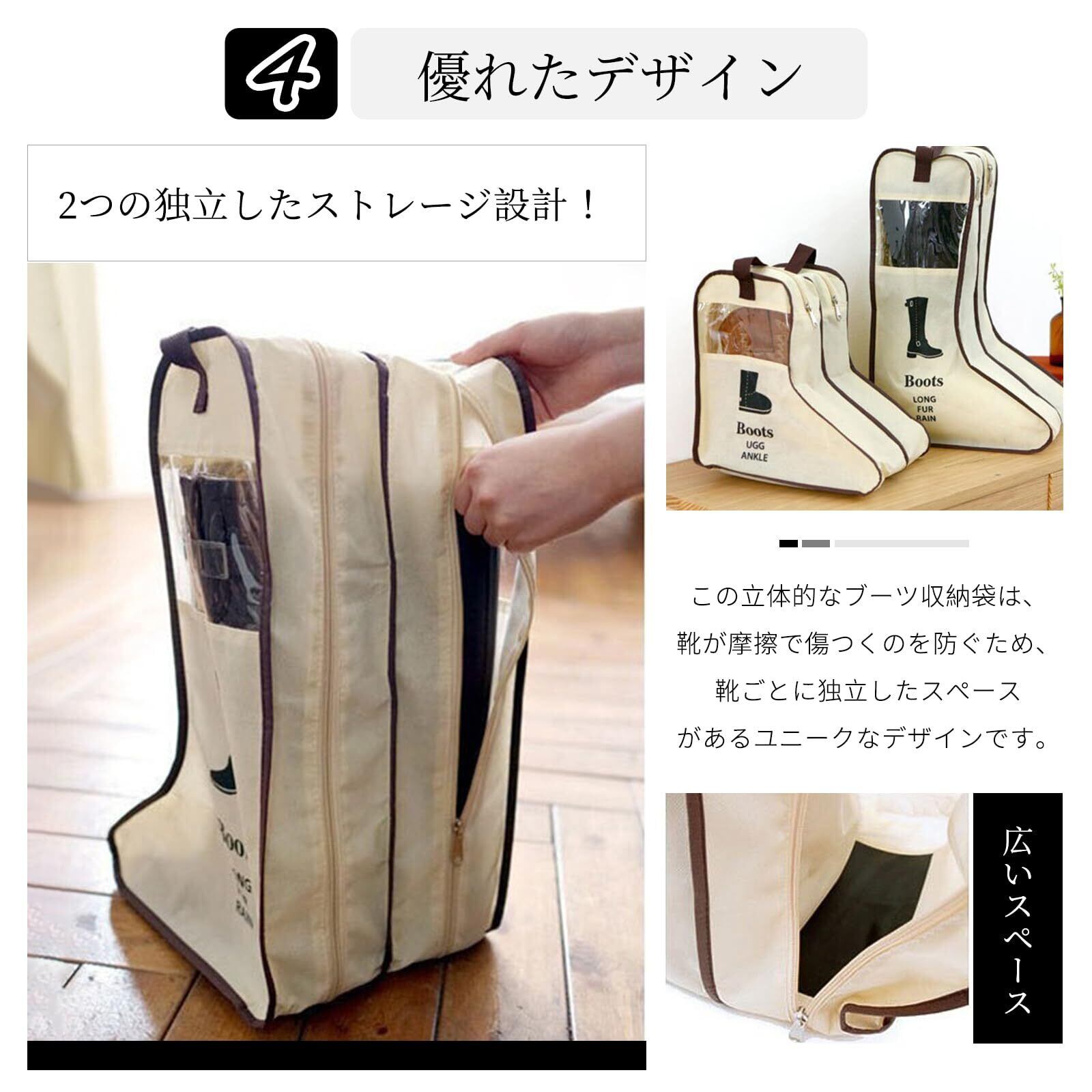 優れたデザイン:この立体的なブーツ収納袋は、靴が摩擦で傷つくのを防ぐため、靴ごとに独立したスペースがあるユニークなデザインです。 シューズオーガナイザーの外側にはシースルーウィンドウがデザインされており、一目で必要なブーツを見つけ、靴の収納状況を簡単に確認することができます。