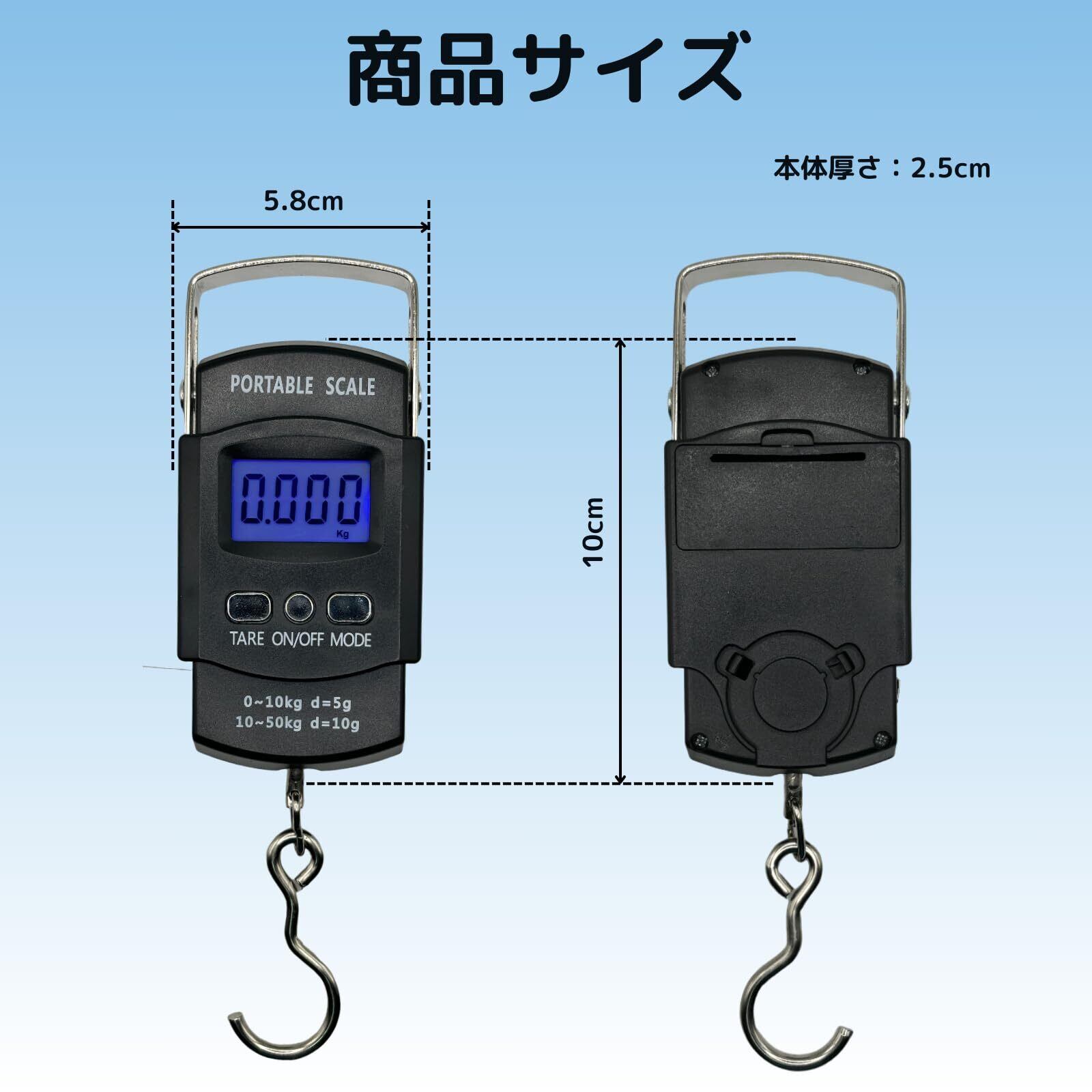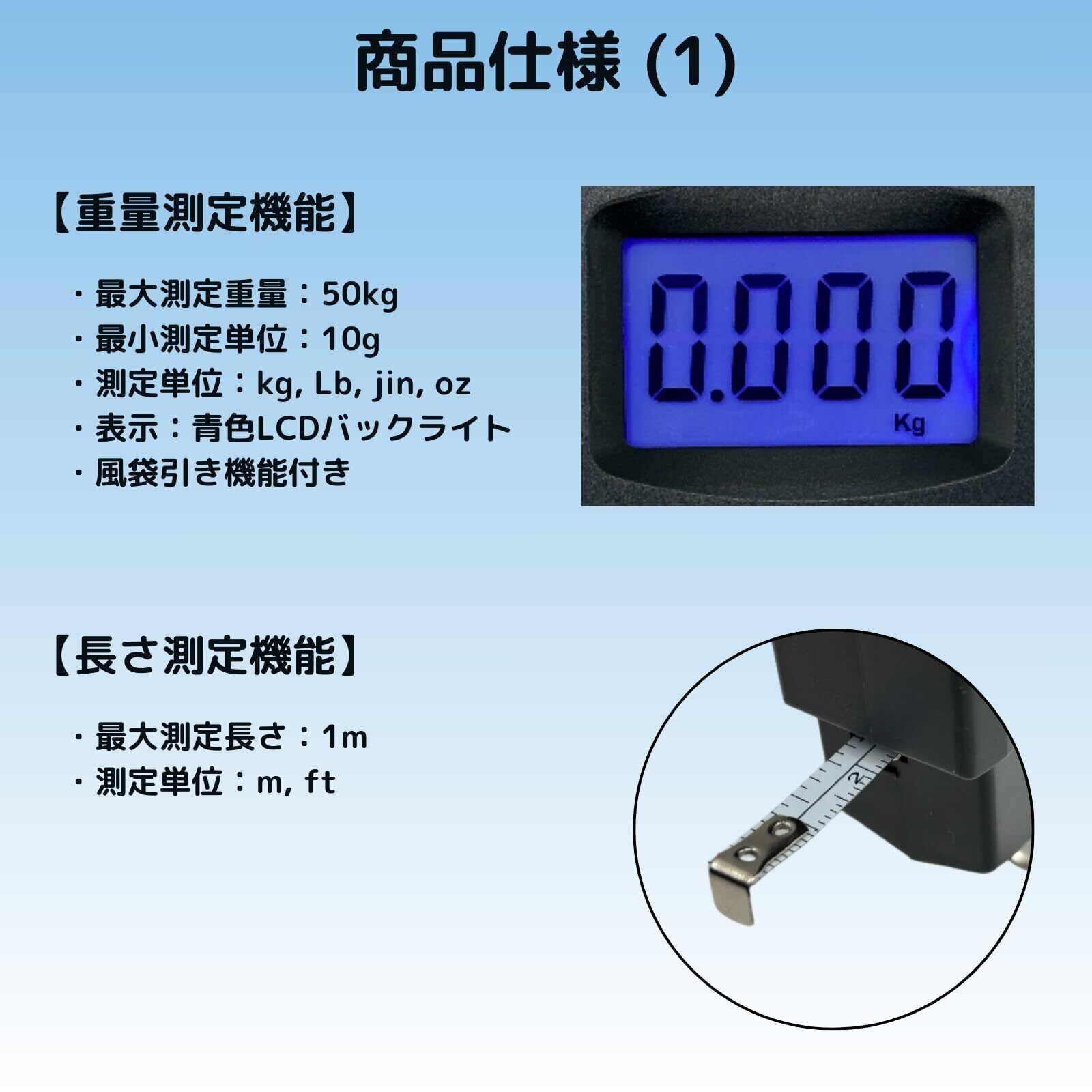 デジタルスケール 最大測定重量 50kg 風袋引き機能付き 最大測定長さ 1m メジャー付き 青色バックライト ラゲッジチェッカー 飛行機旅行 手荷物 機内持ち込み 預け入れ手荷物 旅行 荷物はかり アウトドア フィッシングスケール フィッシング用デジタルスケール 単四電池 2本付属 [並行輸入品]