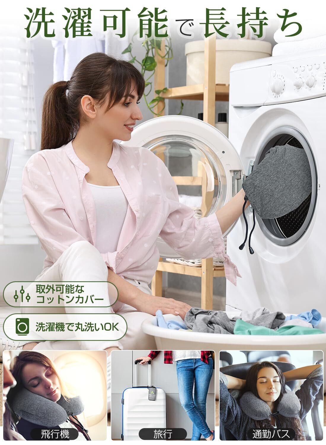 このネックピローは、一息で膨らむ簡単な仕様で、手間なく使えます。カバーは洗濯可能でいつでも清潔を保てるので、安心してご利用いただけます。また、付属の収納袋により、コンパクトに収納できるため、旅行中にも場所を取らず持ち運びが簡単です。