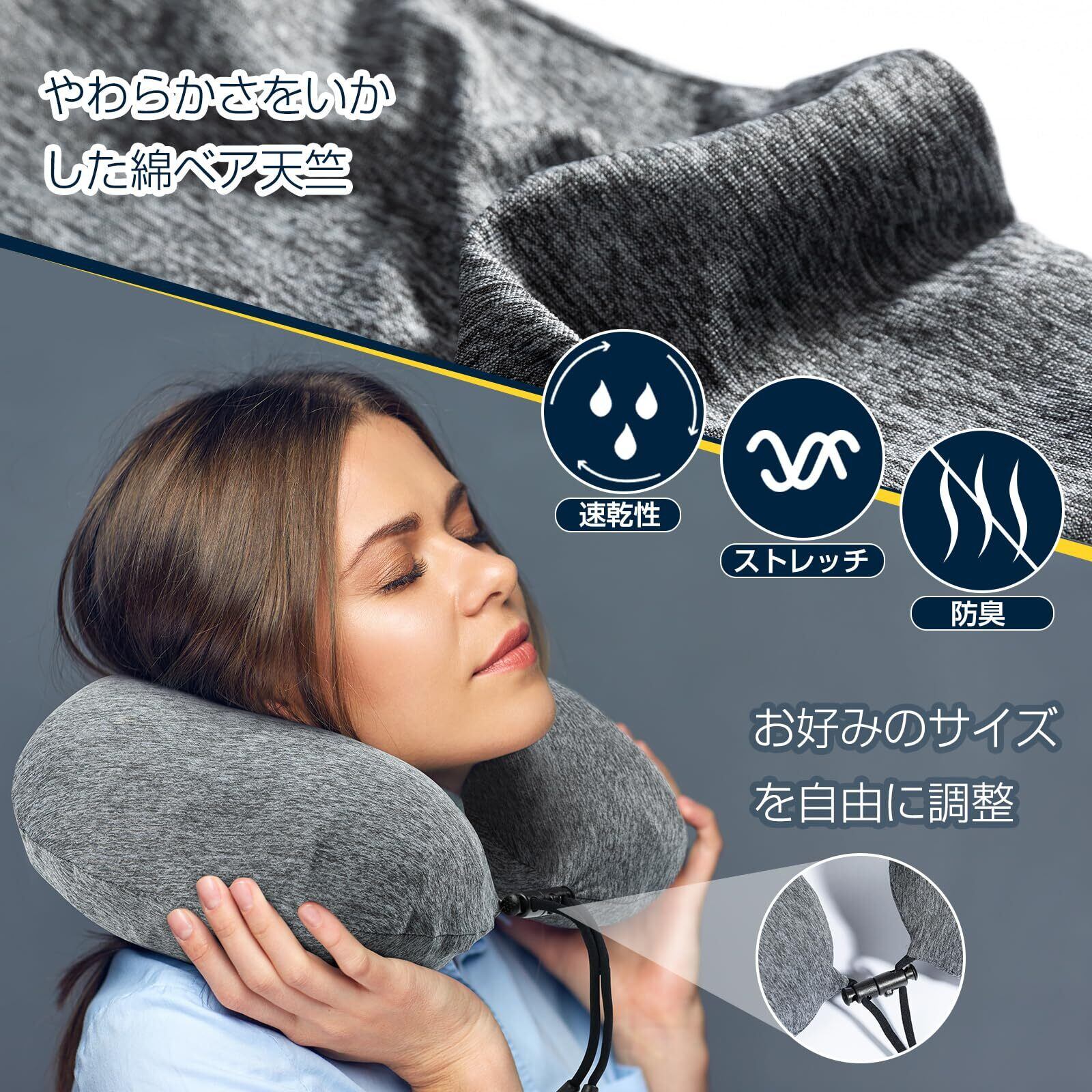 【洗濯可能な綿カバー・肌触りいい】綿ベア天竺素材を採用し、軽さや肌へのやさしいフィット感が優れたほか、速乾性もいい、長時間使用でも蒸れずにサラサラ、よく肌着、子供服などに使用されます。ネックピローのカバーの取り外し方法は本ページ下方の動画にご覧下さい。