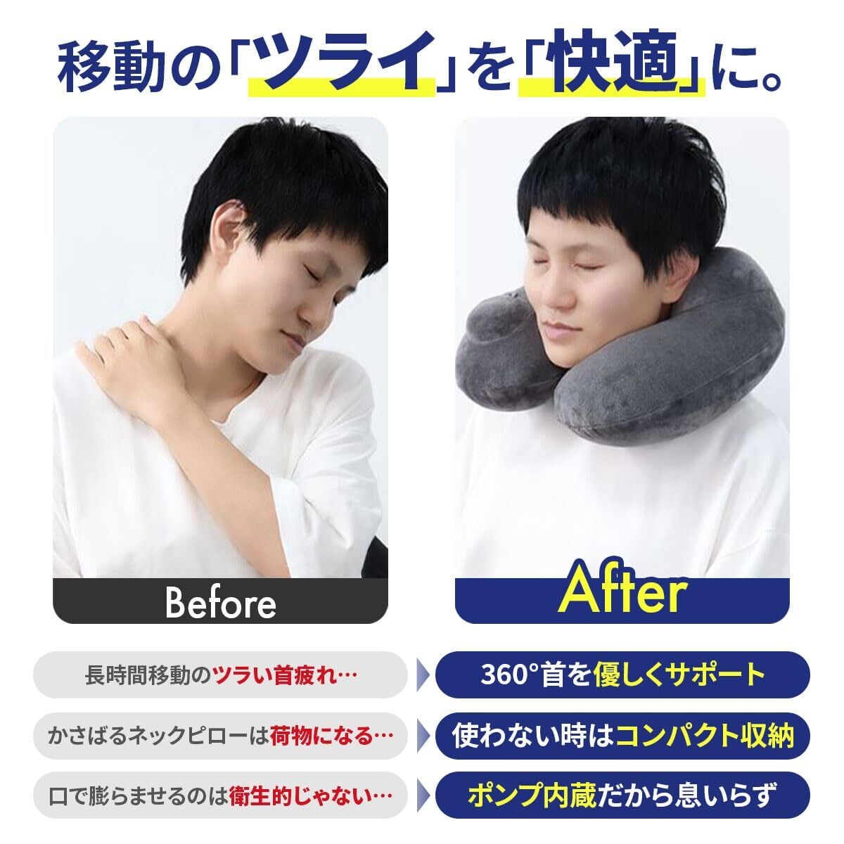 \快適な移動のパートナー!/【Kouizam 国内ブランド ネックピロー 首枕 旅行 飛行機 空気枕 携帯枕 トラベル アウトドア 夜行バス 修学旅行 林間学校 防災 ポンプ式 衛生な手押しポンプ U型 バス オフィス エアピロー クッション 便利グッズ 収納袋 洗えるカバー グレー】で、ストレスフリーな移動をお楽しみください!