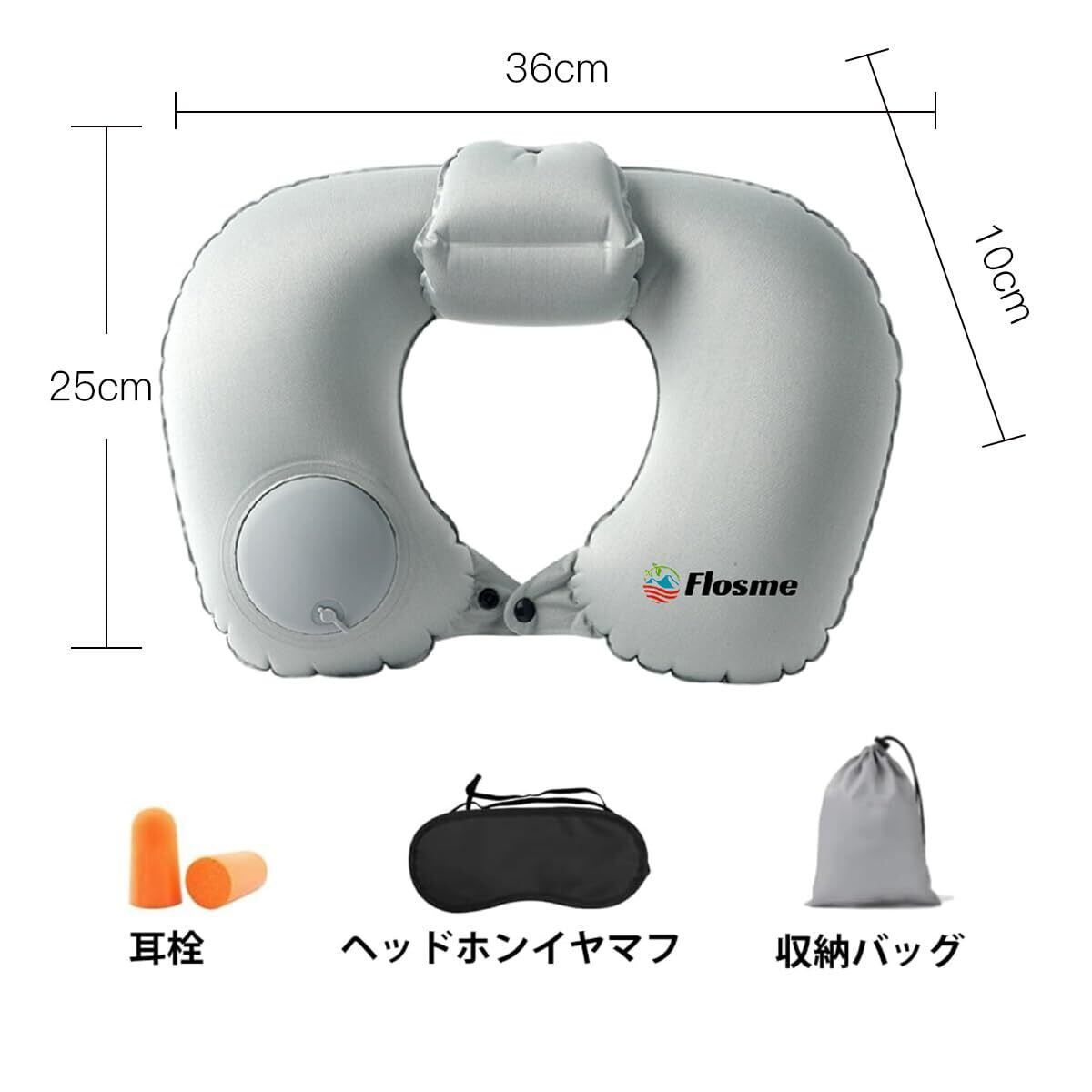 ネックピロー 超軽量 コンパクト手動プレス式 携帯枕U型【ヘッドレスト付き】ら ダブルバルブ 空気枕 折り畳み 持ち運び便利 首枕 車 新幹線 休憩 オフィス ト 飛行機 長距離 旅行枕 収納ポーチ アイマスク 耳栓付き-グレー