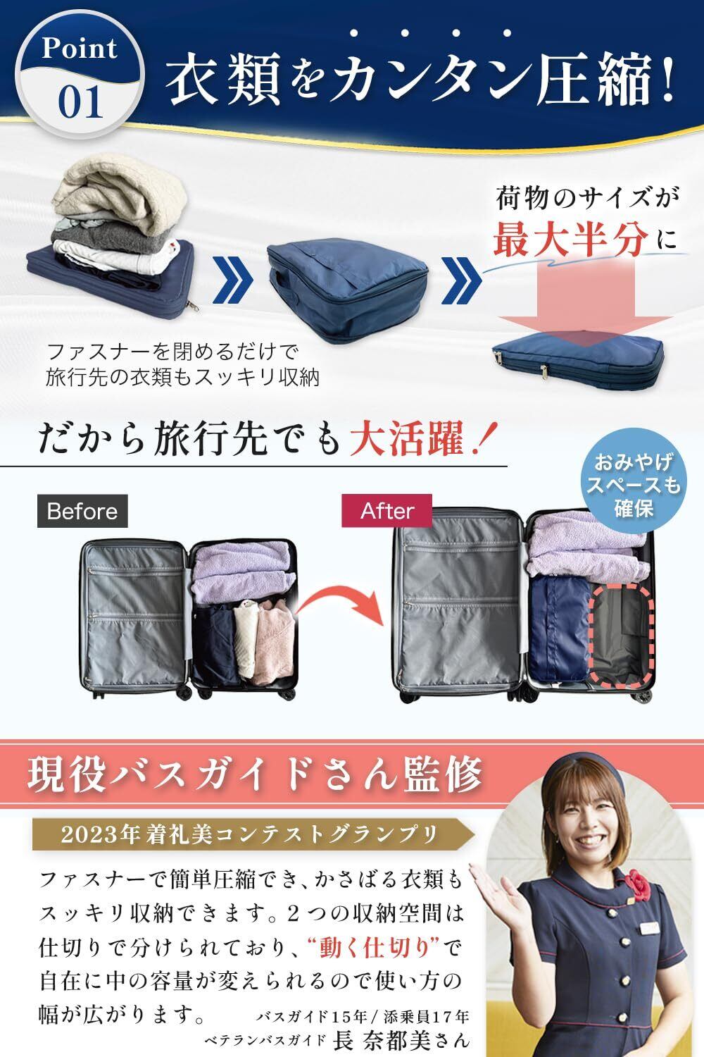 【現役バスガイドさん監修】 旅行やパッキングのスペシャリスト、現役のベテランバスガイド 長 奈都美さんに監修いただきました。