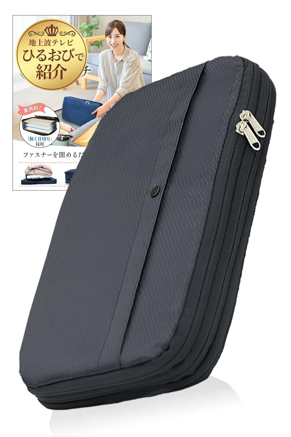 「トラベルポーチ『技術でムダなく収納』YKK 圧縮袋」は、旅行の必需品です。衣類を圧縮してコンパクトに収納できるため、荷物をスリムにまとめ、旅行中のスペースを有効活用します。品質管理に優れたYKK製のジッパーを採用しており、安心してご使用いただけます。