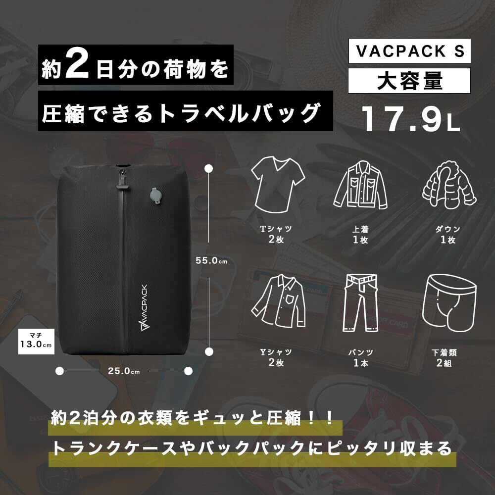 【公式・正規品】VACPACK 圧縮トラベルバッグ 衣類を約半分に圧縮 旅行用 圧縮バッグ 時短パッキング 身軽旅 便利グッズ 小型ポンプ付属 12ヶ月 旅行/出張/合宿 (S(17.9L) /スターターセット)