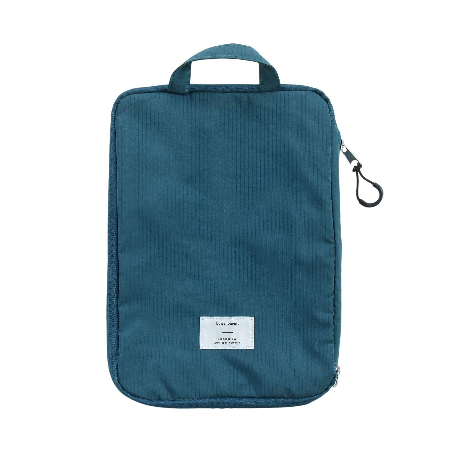 【 ボンモマン公式】トラベルポーチ 圧縮 衣類 旅行 旅行用圧縮袋 収納ポーチ おむつ 便利グッズ トラベル パッキング 出張 軽量 簡単 YKK アンジェ bon moment (ブルーグリーン(stripe), Sサイズ)