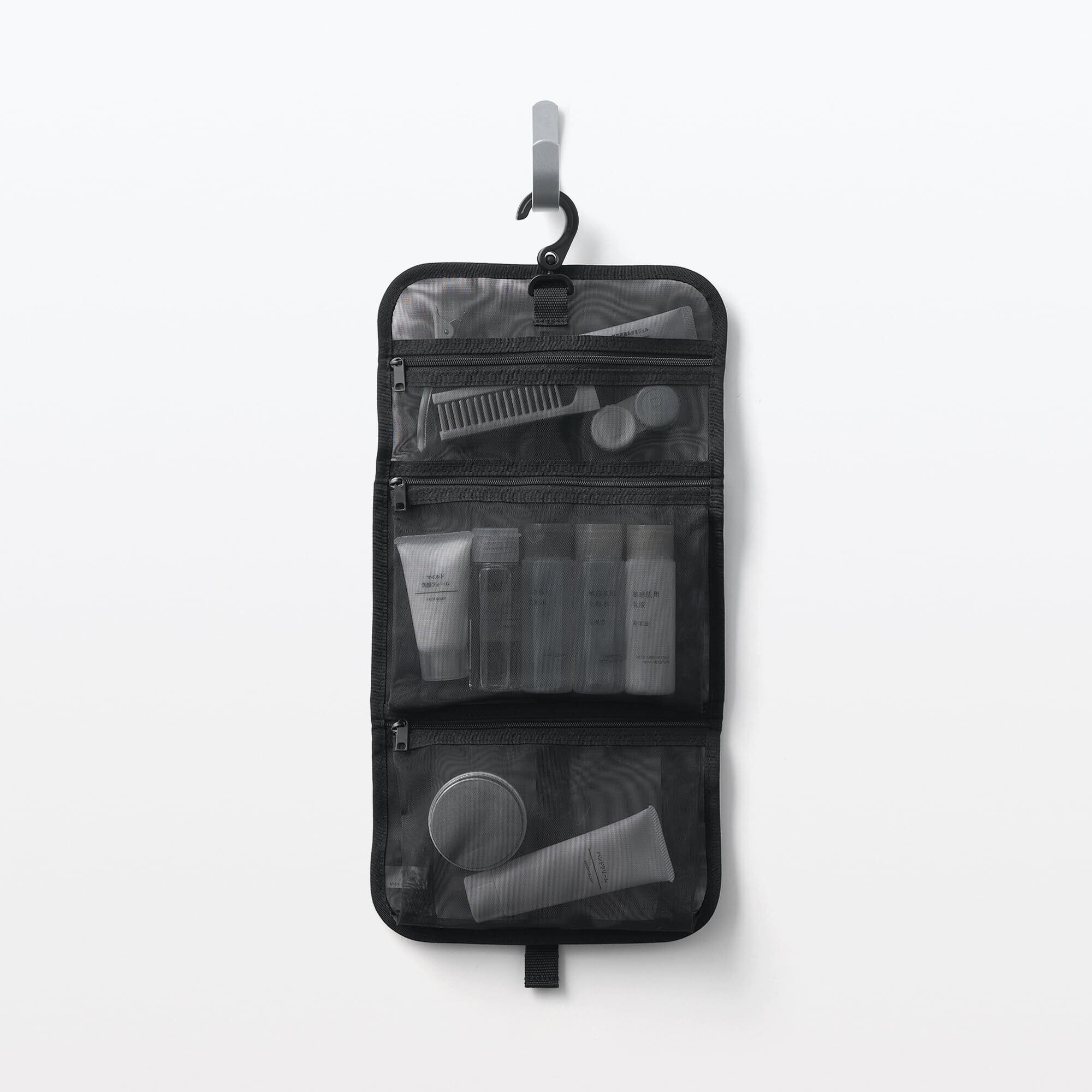 \機能性抜群の洗面用具ケース!/【無印良品】ナイロンメッシュ吊るして使える洗面用具ケース ─ 黒でシンプルなデザインが魅力!