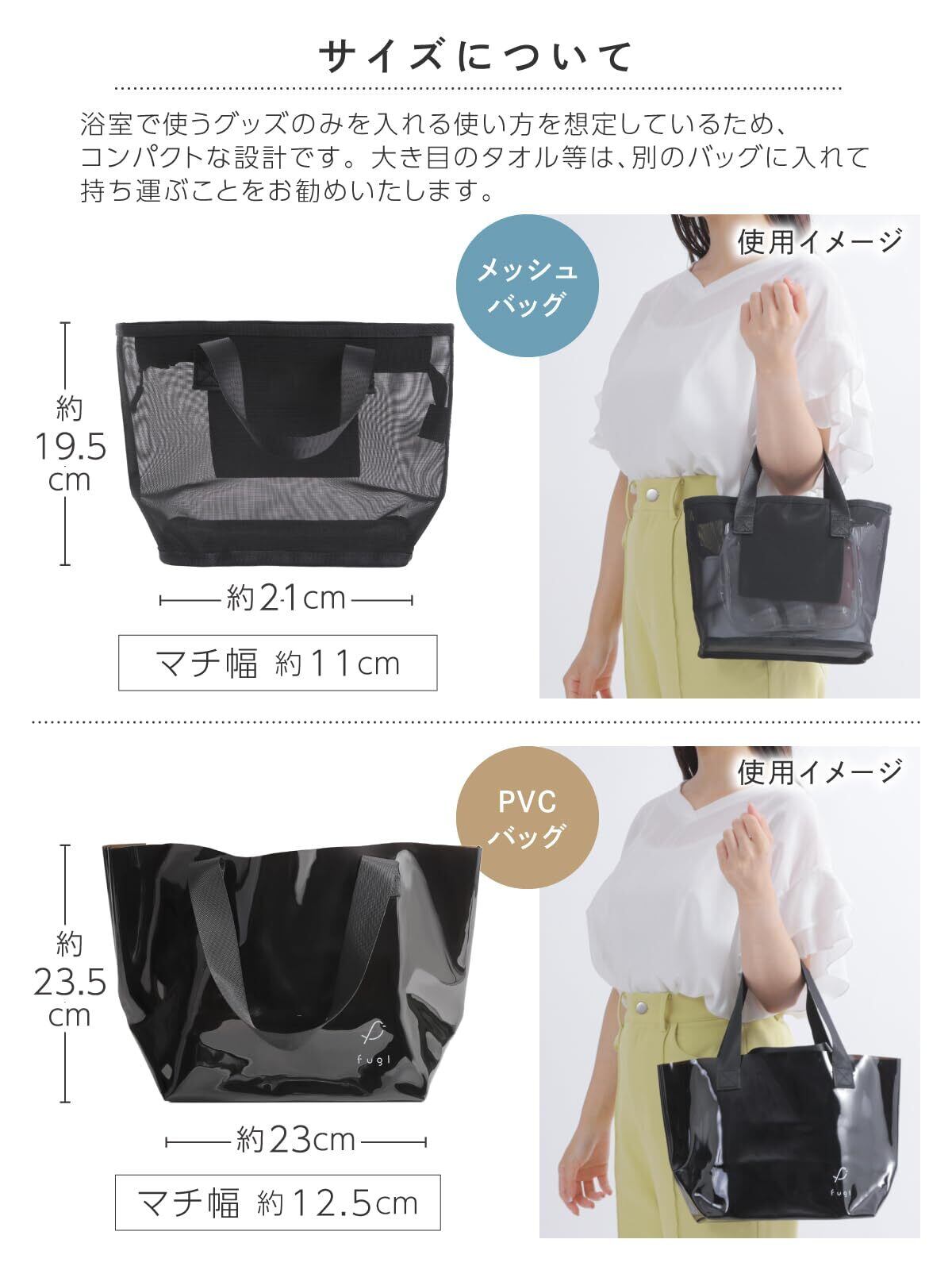 【使い方】入浴グッズをメッシュバッグに入れて浴室へ→入浴後はそのままPVCバッグにイン→そのまま持ち帰れるから身の回り品が濡れない!