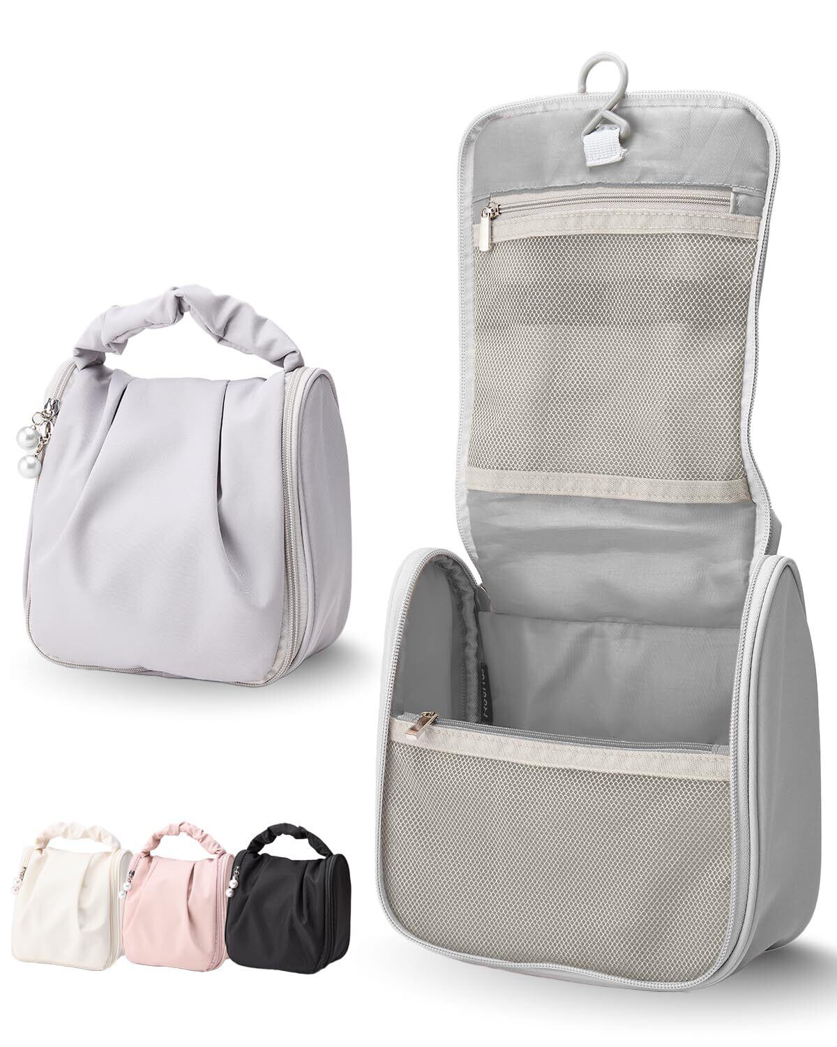 化粧ポーチ コスメポーチ メイクポーチ 大容量【Poco'ce掲載】【日常でも旅行でも活躍するポーチ】トラベルポーチ 吊り下げ 旅行 ポーチ 小物入れ 洗面用具 大きめ 撥水 軽量 おしゃれ 可愛い トラベル 出張 持ち運び 縦型 自立 (パールグレー)
