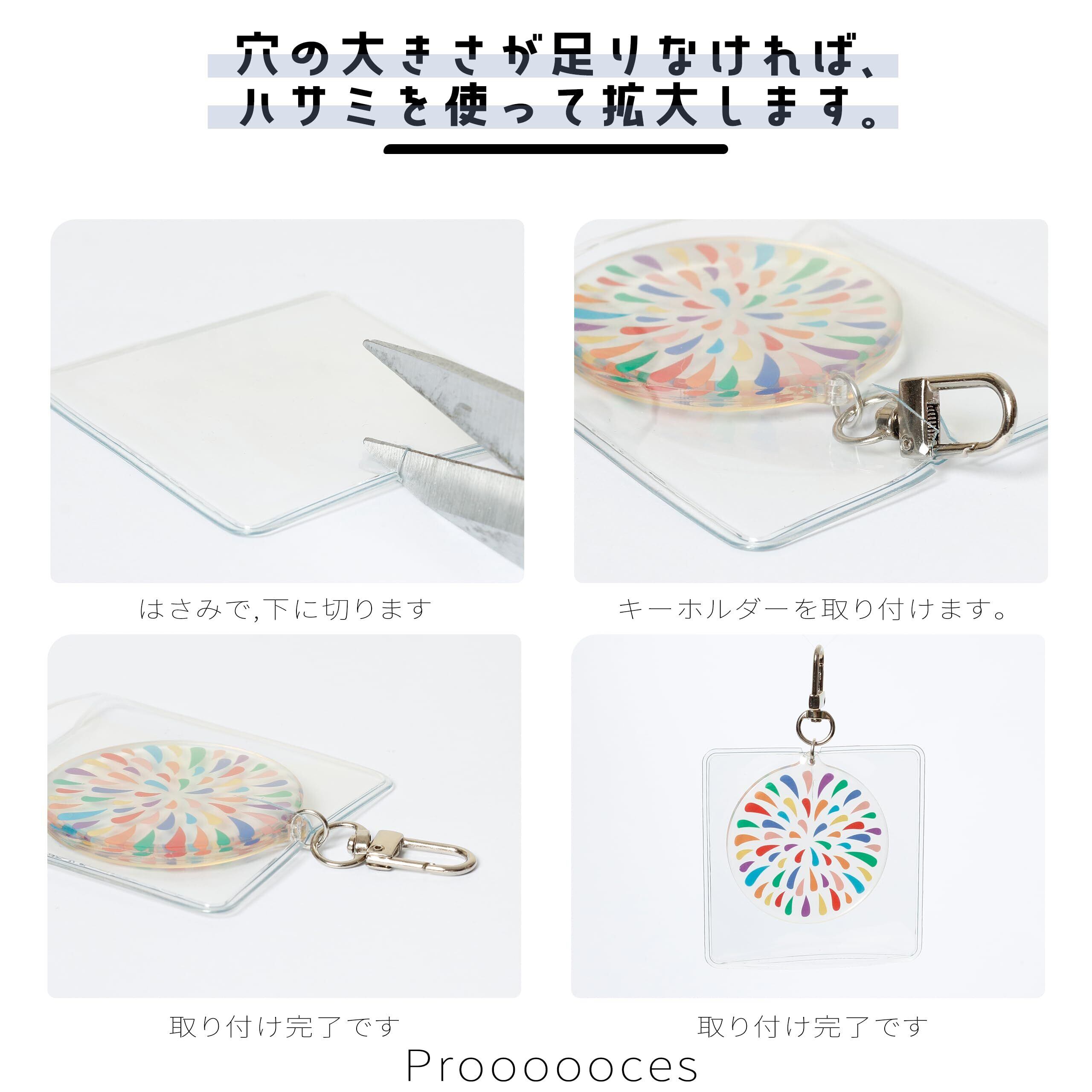 「[Proooooces] アクリルキーホルダー カバー」は、アクリルキーホルダーやラバーストラップ以外にも、名札や小物など様々なアイテムの保護にご利用いただけます。大切な友人や家族へのギフトにもぴったりな商品です。このセットが、あなたのライフスタイルに便利さと安心感をプラスします。