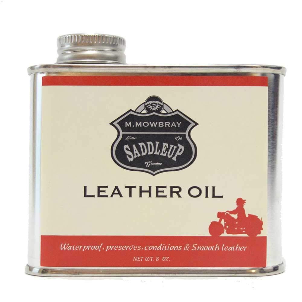 革を乾燥から守る。マットに仕上がる保湿オイル「サドルアップ レザーオイル」天然ミンクオイルやキャスターオイルなど天然由来成分を配合した保湿力の高いオイルです。固形のミンクオイルとは異なりリキッドタイプのため、べたつかずサラッと革に浸透します。マットに仕上がるためツヤを出したくないレザーへのお手入れにおすすめです。