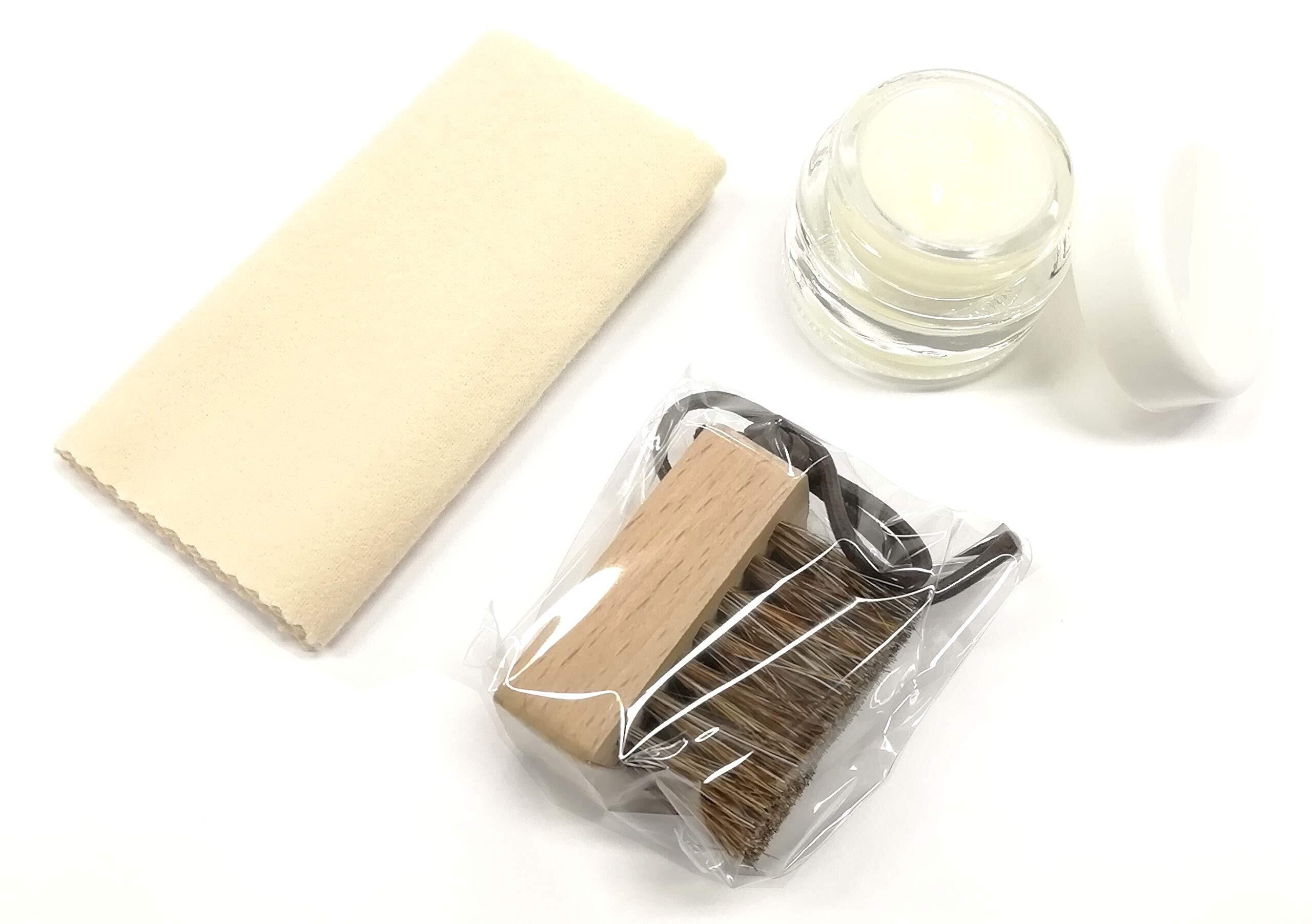 「馬毛ブラシミニ」の3点をセットにしたレザー専用のケアキットです。