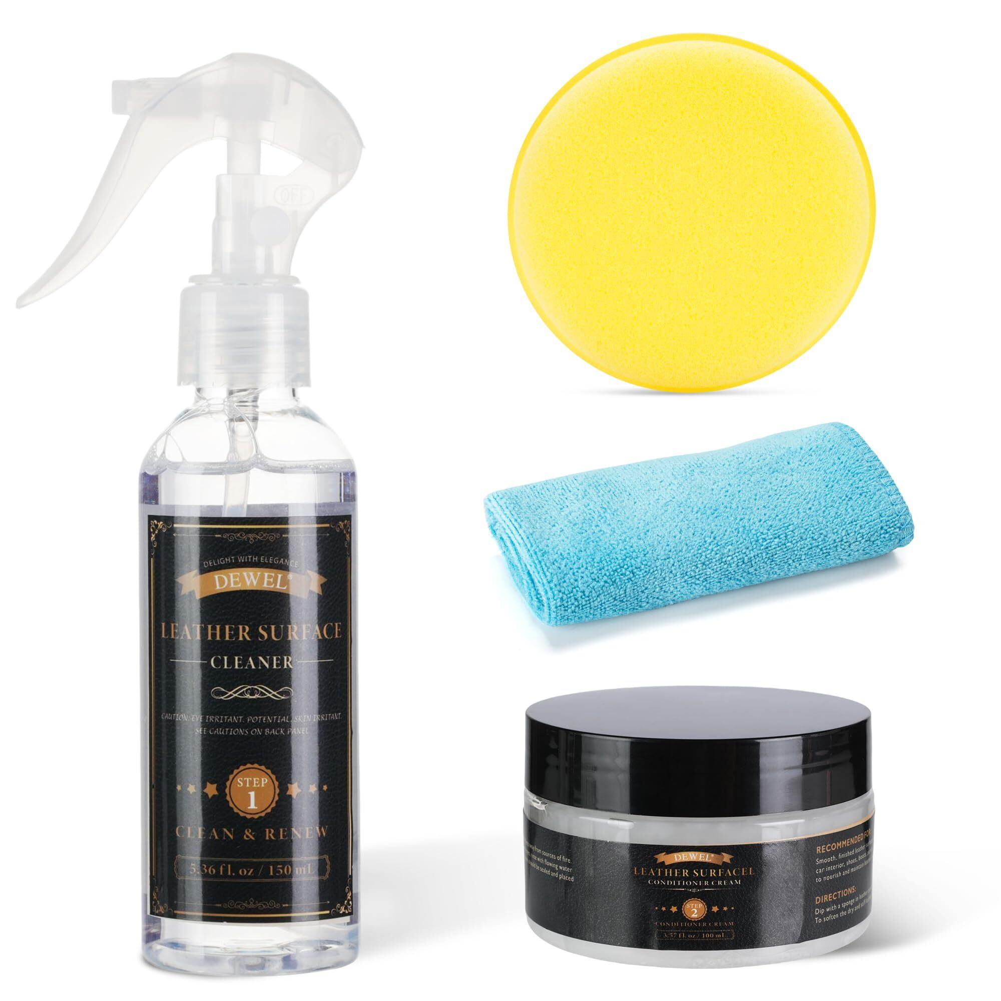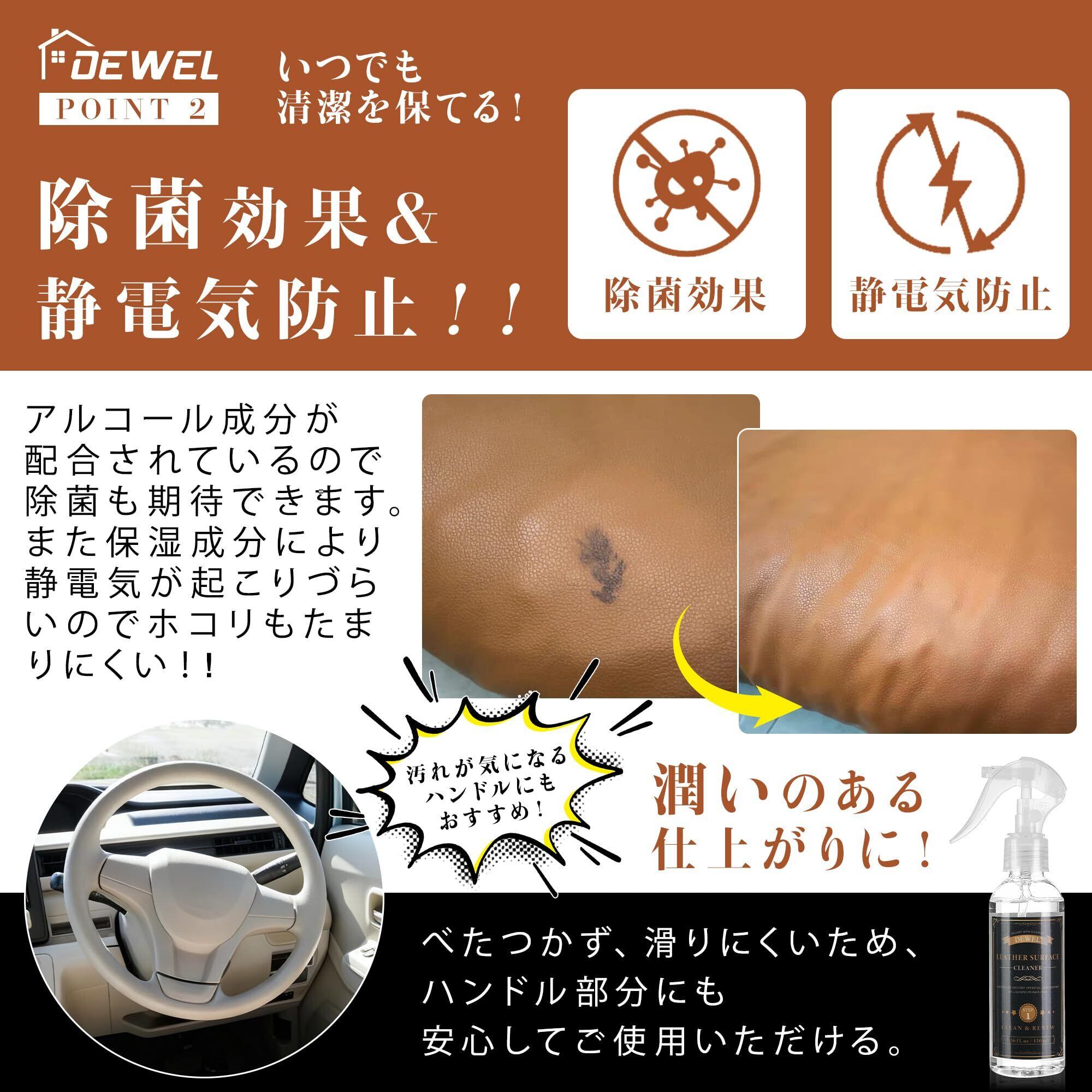 DEWEL レザークリーナー 革 手入れ ツヤ出し 割れ防止 防カビ カビ 汚れ除去 保湿 保革 革靴クリーナー ジャケット 革 ソファー手入れ 革財布の汚れ落とし 車 レザーシート の洗浄、保護用 革製品 ケア用品