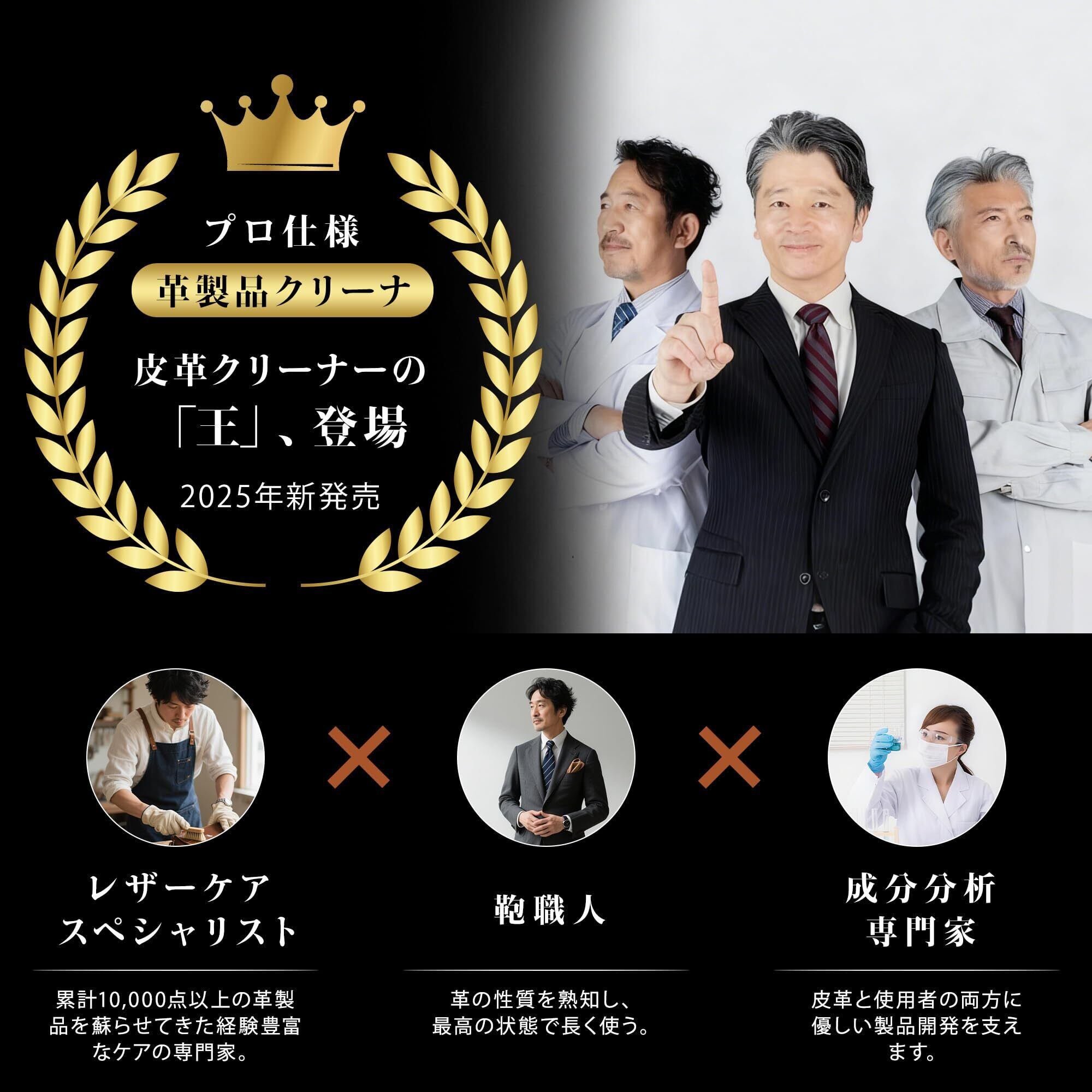 【皮革の専門家|汚れとカビを効率的に除去】本品は、お気に入りの革製品に付着した日常の汚れはもちろん、湿気による嫌なカビまでを効率的に分解・除去する専用クリーナーです。本品は革素材を傷つけることなく、表面に付着した汚れを効果的に浮かせて拭き取ることで、皮革を美しく保ちます。※表面の汚れに効果的であり、皮革内部まで浸透した頑固な汚れは落としきれない場合がございますので、あらかじめご了承ください。抗菌成分配合で、清潔さを持続させます。