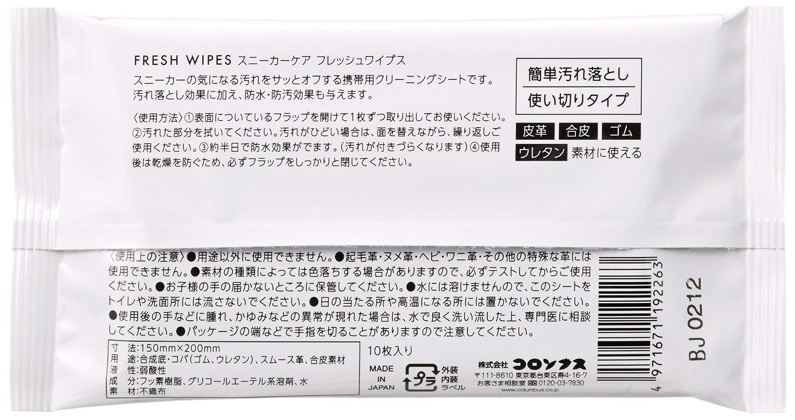 [Columbus] [コロンブス] 気になる汚れをサッとオフする クリーナーシート スニーカーケアフレッシュワイプス 防水・防汚効果プラス 10枚入り