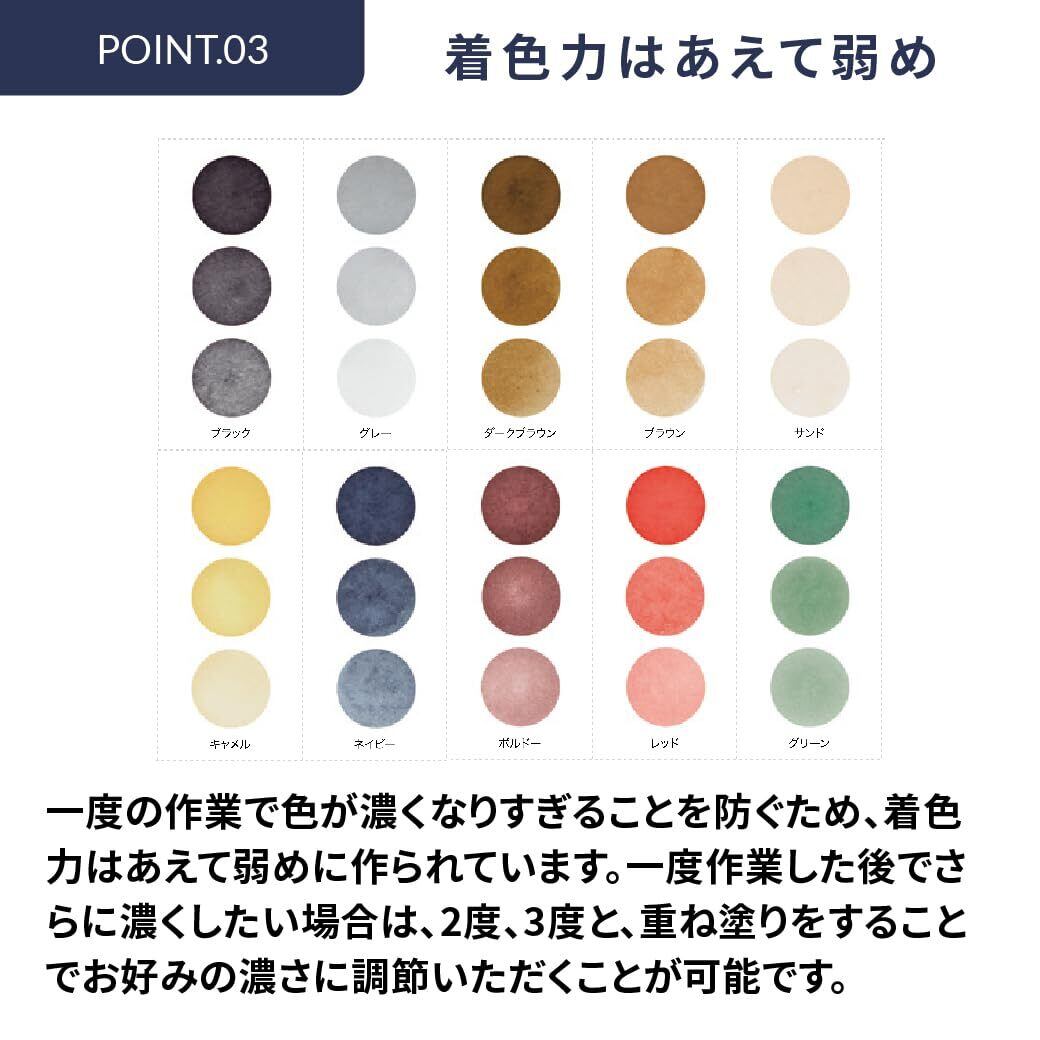 必ず目立たない部分でテストしてからご使用下さい。 本商品は重ね塗りをすることで濃くなっていく商品になります。