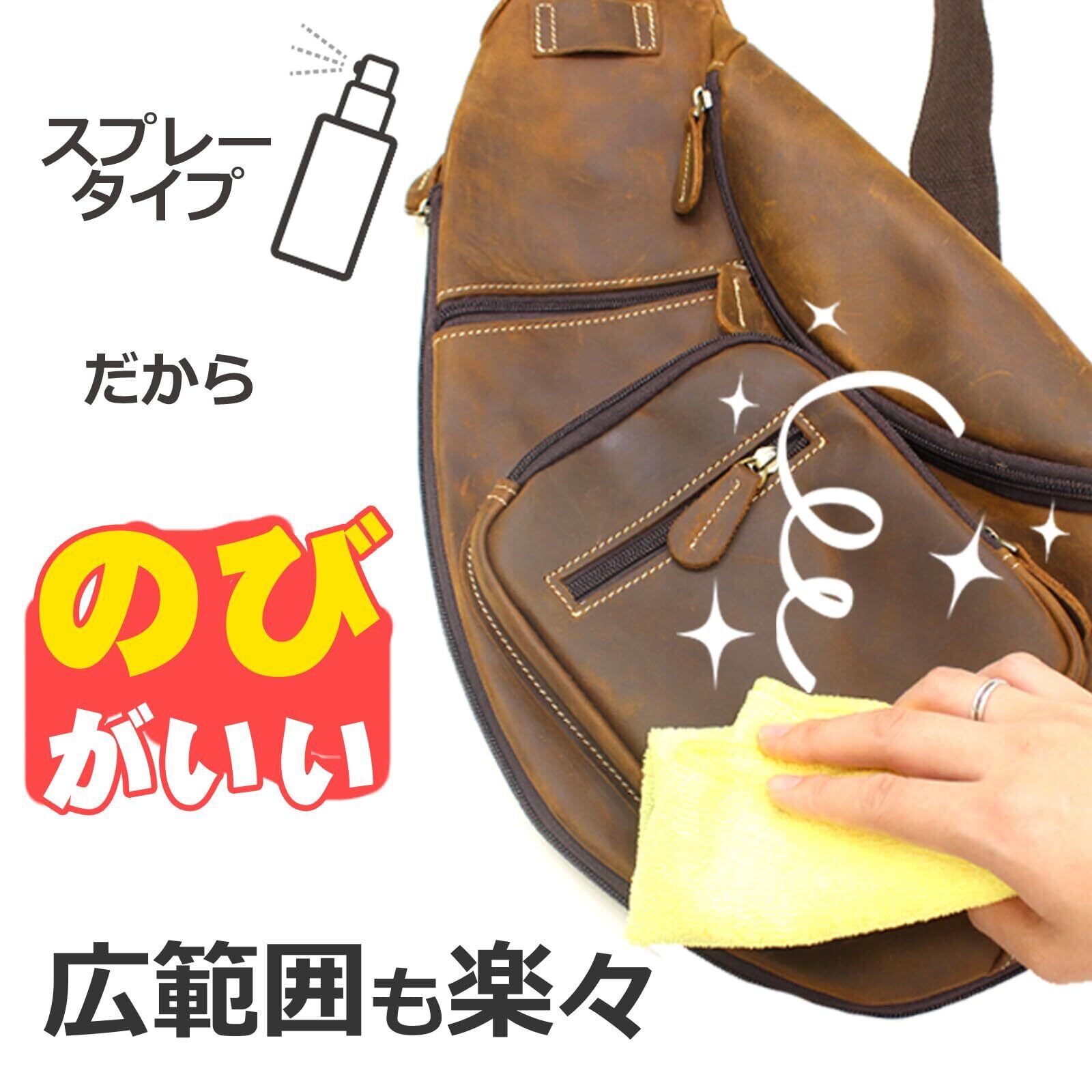 【スプレー式&クロス付きで初心者でも安心】付属のクロスにスプレーして拭くだけ。コンパクトな30mlサイズは持ち運びや収納にも便利で、家庭でも車でもすぐに使える設計です。