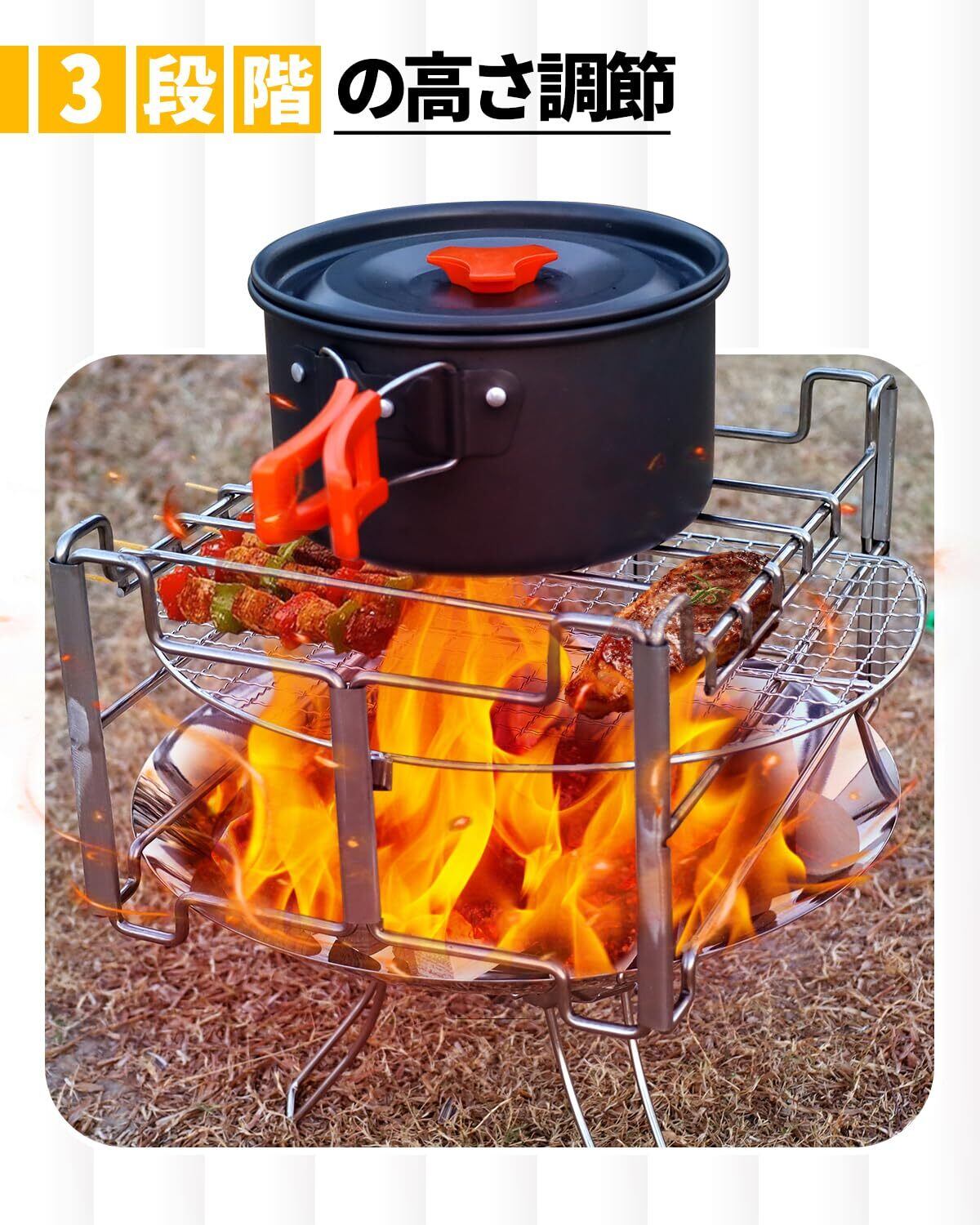 この専用五徳には、アウトドア体験を向上させるためのさまざまな特長があります。