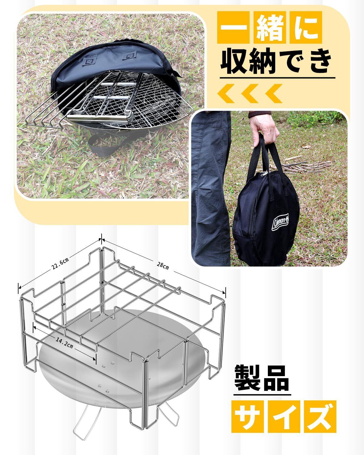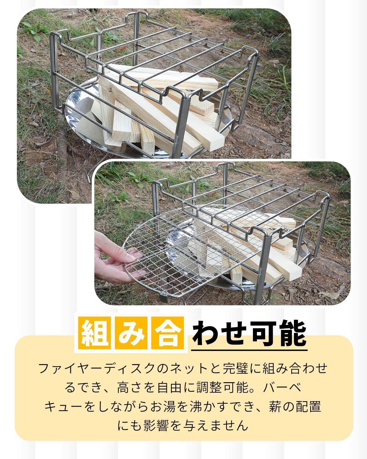 【1秒展開】1秒で展開し、2秒で設置可能。複雑な設置手順を最大限に解消し、Coleman(コールマン)ファイヤーディスク焚き火台と完璧に一緒に収納でき、最先端で最も便利な新しいファイヤーディスク専用をお届けます。(本商品は五徳のみ,焚き火台付きません)