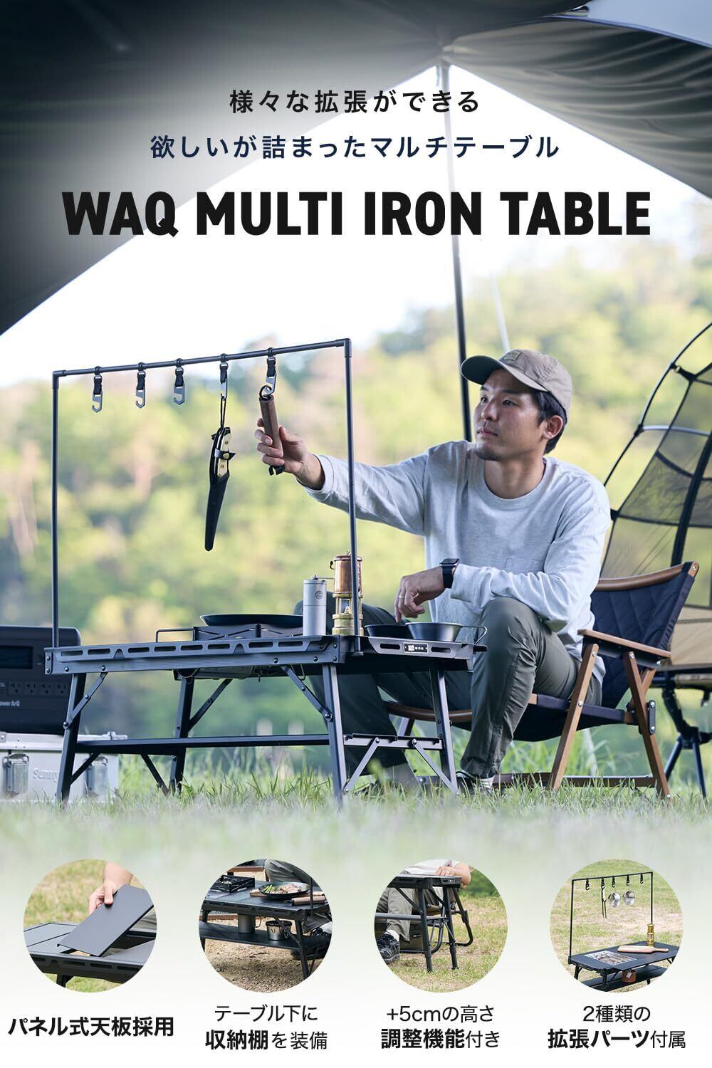 WAQ MULTI IRON TABLE アイアンテーブル WAQ-MIT1 テーブル パネル式 アウトドア キャンプ バーベキュー BBQ アルミテーブル ランタンハンガー付き 簡単組立 アイアン コンパクト 収納袋付き