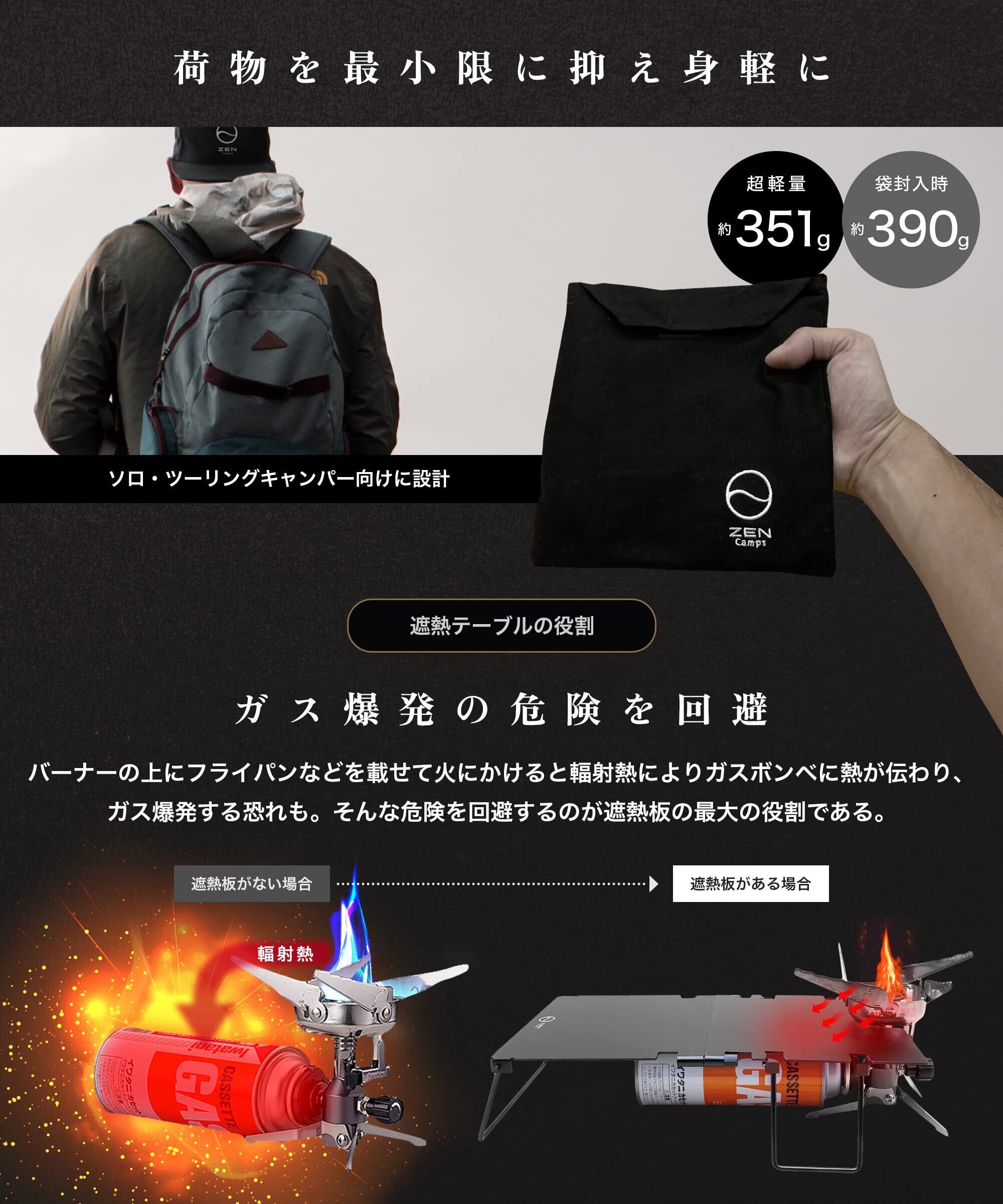 ZEN Camps ST-310 ST-340 遮熱板テーブル ガス缶カバー付 遮熱板 SOTO ST310 ST340 黒 遮熱 テーブル シングルバーナー 分割式 コンパクト 軽量 遮熱テーブル 【日本ブランド】 (ST-310, ST-340対応)